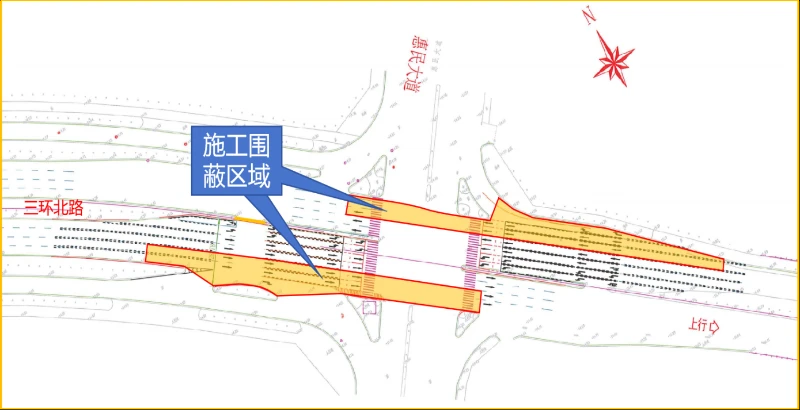 圖3-南、北進(jìn)口施工期間繞行示意圖