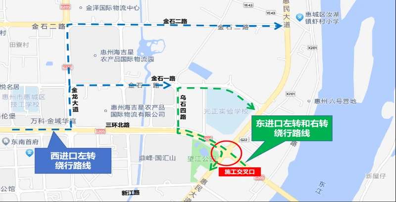 惠州市惠城區(qū)公路事務(wù)中心正組織惠州市惠城區(qū)普通公路災(zāi)毀改造工程施工,根據(jù)施工安排,近期需對三環(huán)北路/惠民大道交叉口進(jìn)行圍蔽施工。為確保施工期間道路交通安全,市公安局交警支隊(duì)根據(jù)《中華人民共和國道路交通安全法》等有關(guān)法律法規(guī),對該路口實(shí)施臨時(shí)交通管制措施。