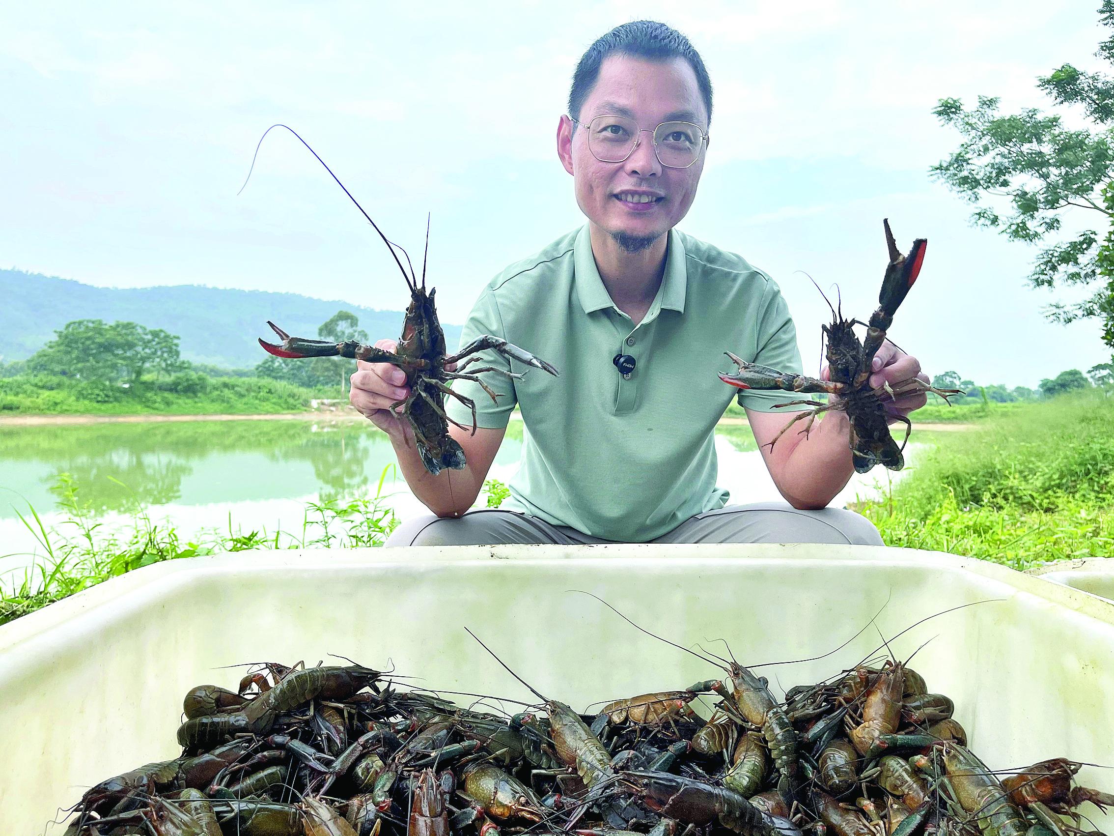 在仲愷潼湖玳瑁村,養(yǎng)蝦人迎來大豐收,碩大的藍(lán)龍蝦在池中歡快游動(dòng)。