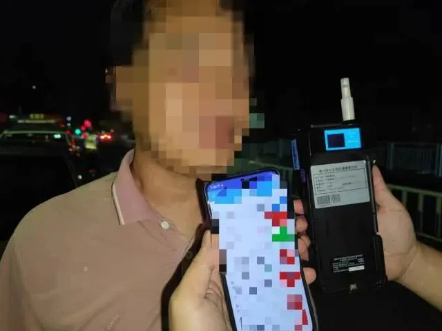 當(dāng)日21時(shí)02分,一輛粵L9X***小車駛?cè)牖葜荽蟮罊z查點(diǎn),民警利用酒精測試棒對(duì)駕駛員進(jìn)行例行檢查,現(xiàn)場呼氣式酒精檢測結(jié)果為100mg/100ml,達(dá)到醉酒駕車標(biāo)準(zhǔn)。