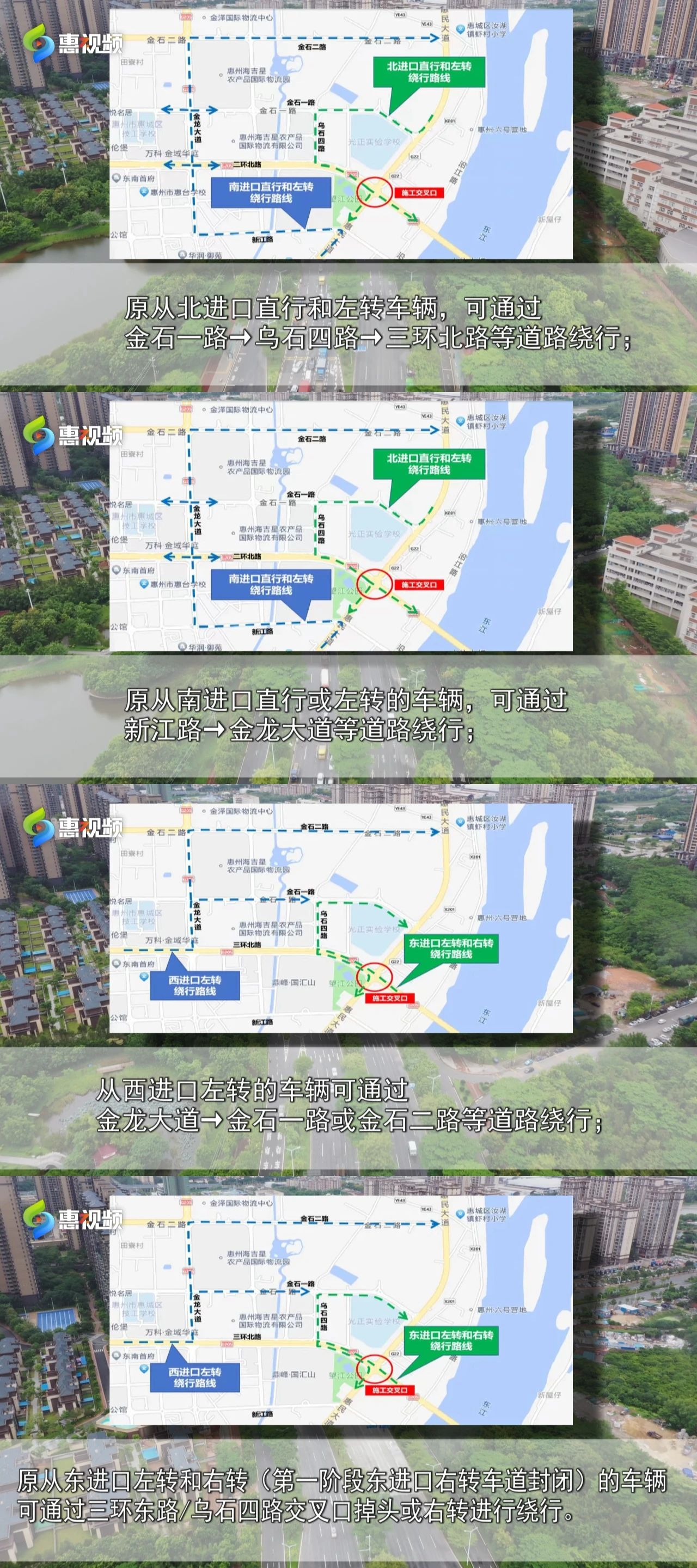 第一階段:三環(huán)北路與惠民大道交叉口東西向外側(cè)6車道封閉,內(nèi)側(cè)8車道可直行;南北進口禁止車輛直行和左轉(zhuǎn),人行橫道禁止行人通行;
