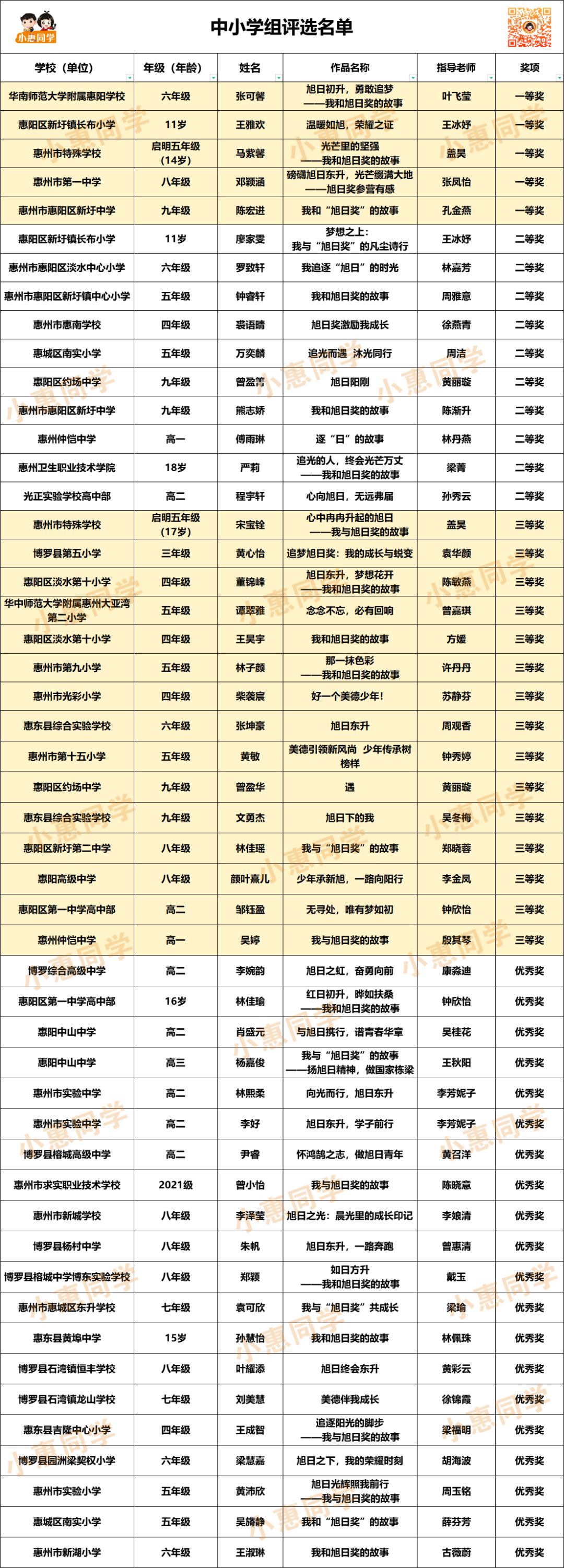 中小學(xué)組評選名單