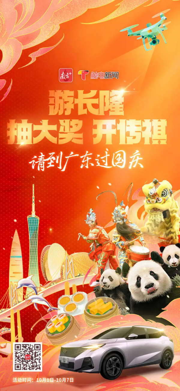 旅游興、百業(yè)旺。全省旅游發(fā)展大會(huì)吹響號(hào)角,廣東各行各業(yè)加油干、奮力拼。在國(guó)慶假期來(lái)臨之際,繼龍年春節(jié)“抽大獎(jiǎng)”活動(dòng)后,南方+客戶端、觸電新聞客戶端將煥新推出“請(qǐng)到廣東過(guò)國(guó)慶之游長(zhǎng)隆、抽大獎(jiǎng)、開(kāi)傳祺”活動(dòng),七天假期,天天有驚喜。