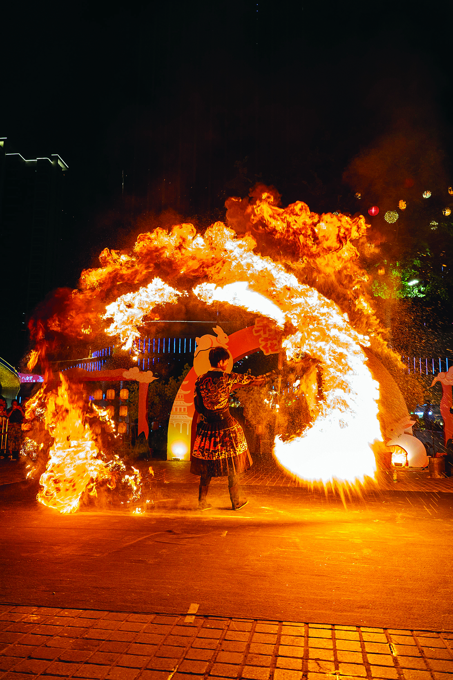 其他商圈同樣也是熱鬧非凡。10月1日晚,一場火壺表演在市區(qū)隆生·金山湖中心商圈舉行,吸引了眾多市民圍觀,人群中歡呼不斷。