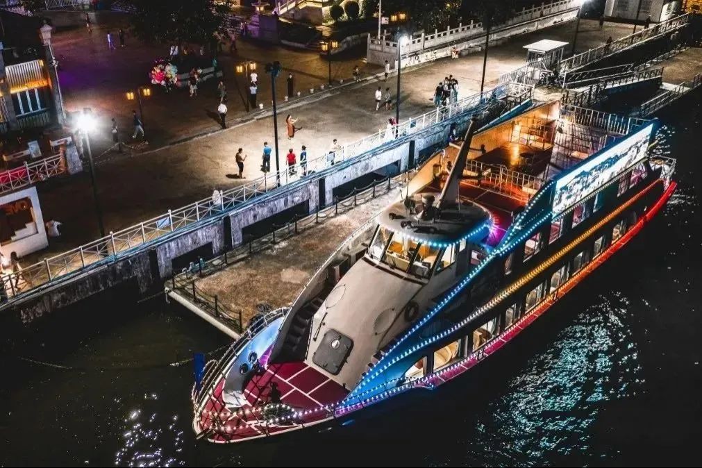 江風(fēng)輕拂,帶著絲絲涼意,驅(qū)散了白日的炎熱。隨著船只的行進(jìn),兩岸的燈火如流星劃過(guò),讓人仿佛置身于一片流動(dòng)的星河之中,享受著前所未有的清涼與寧?kù)o。