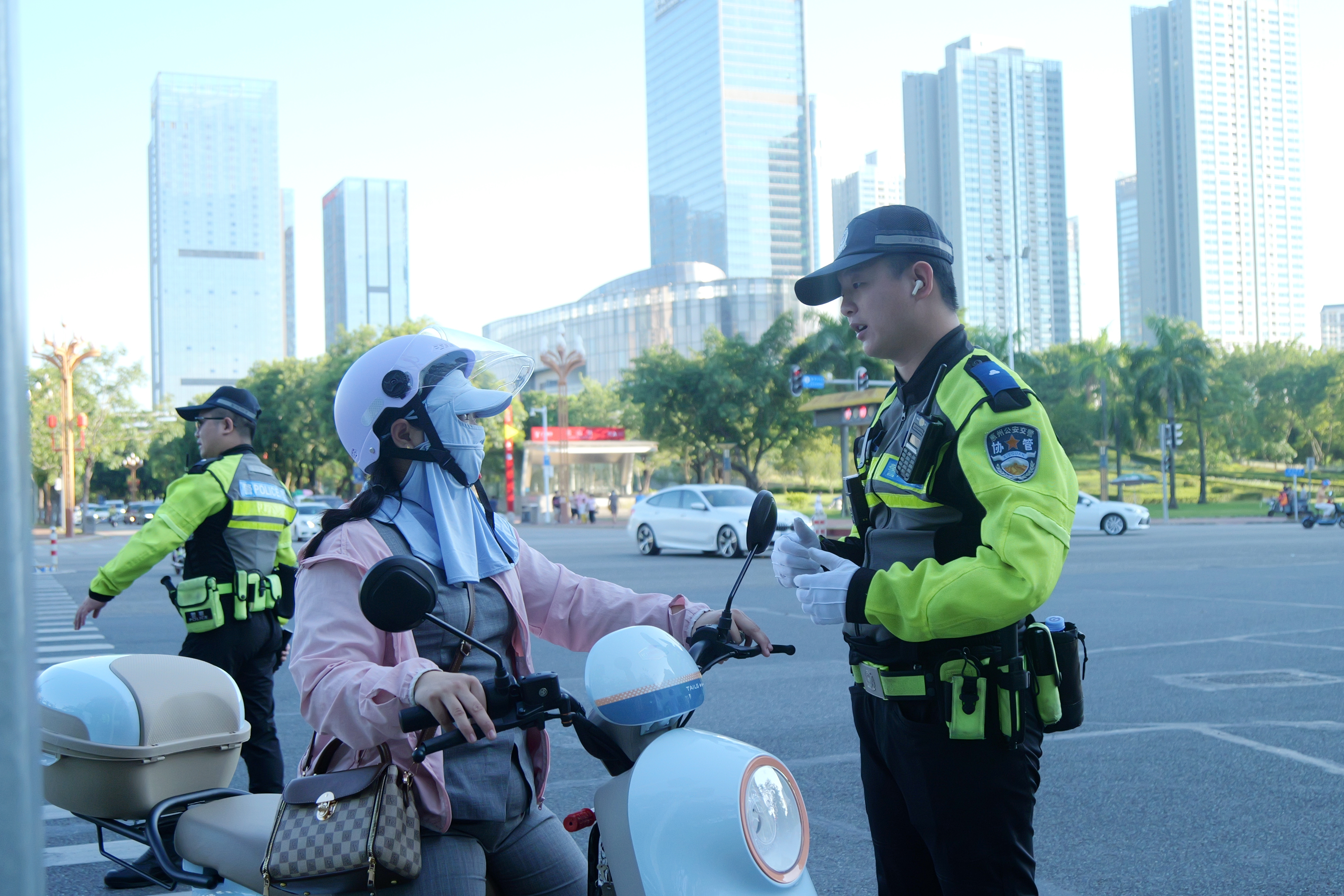 10月5日,惠州交警在市區(qū)江北對市民進(jìn)行交通勸導(dǎo)。