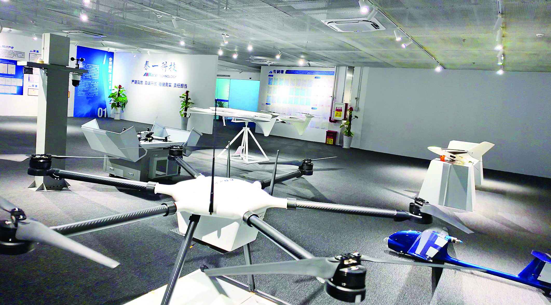 廣東泰一高新技術(shù)發(fā)展有限公司展廳內(nèi)的行業(yè)無人機(jī)。惠州日報(bào)記者黃鑫威 攝