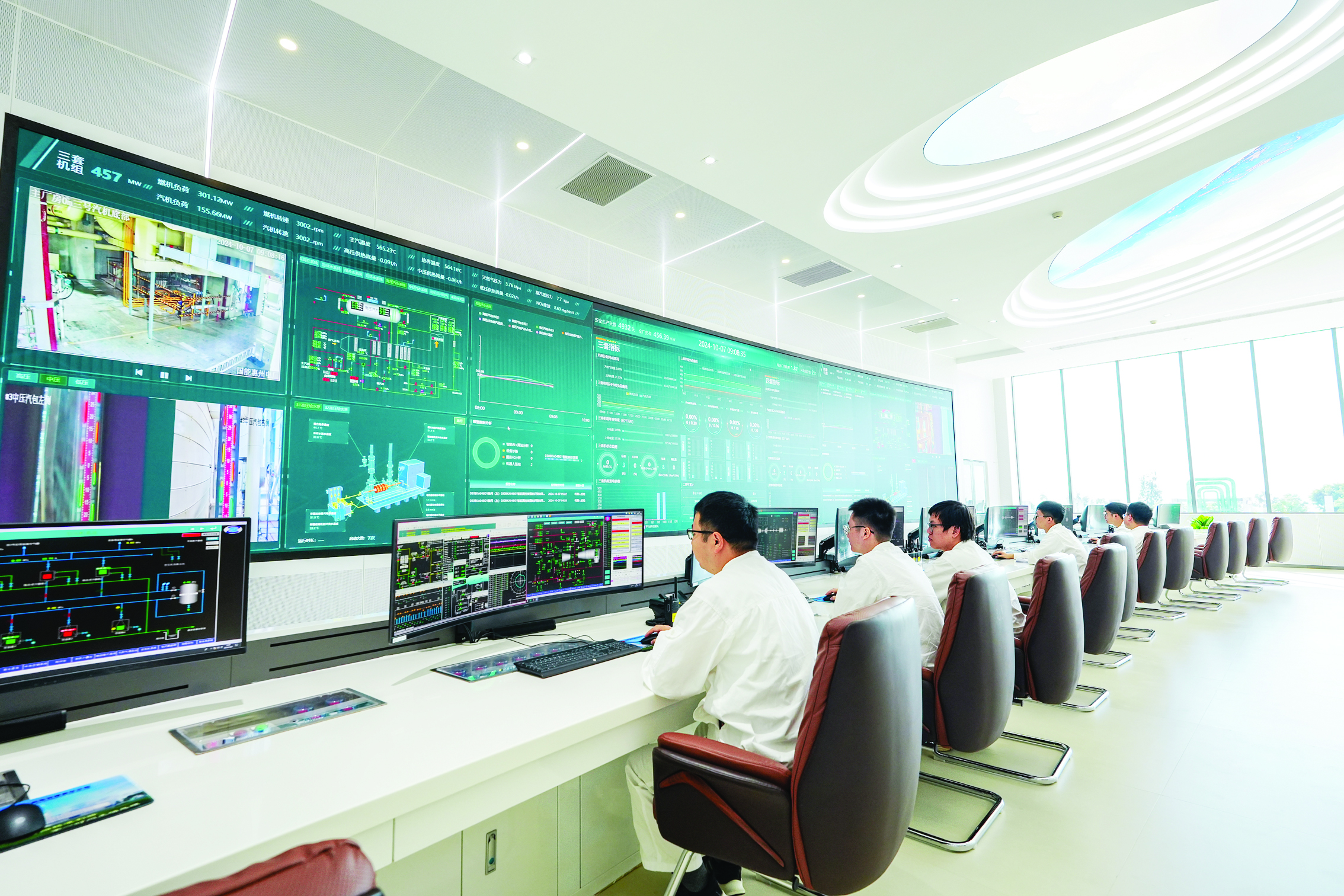國能惠州電廠工作人員在中控室觀察設備運行情況。