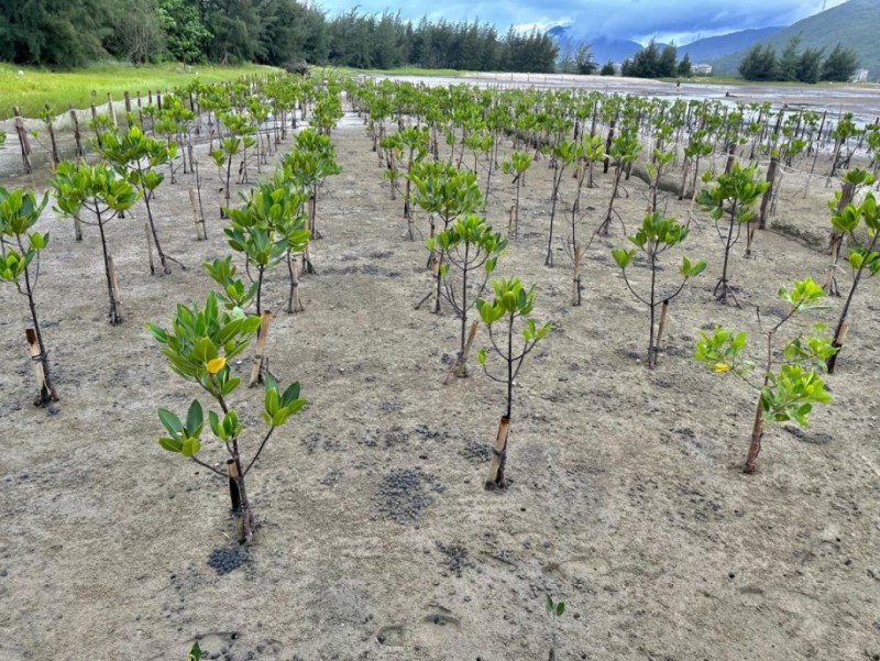 離中廣核廣東惠州太平嶺核電建設(shè)現(xiàn)場(chǎng)不遠(yuǎn)處,有一塊灘涂,與一般沿海灘涂不大一樣,這里不是光禿禿的樣貌,也沒有養(yǎng)殖著紫菜等作物,而是整齊地生長(zhǎng)著一片小樹苗,一看便知被人精心照料著。它們背后的故事,還要從4年前說起。