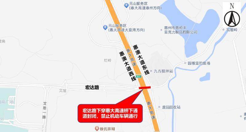 交通管制期間,原從宏達(dá)路-惠大高速橋下通道東西向行駛的車(chē)輛,請(qǐng)從惠澳大道/四環(huán)南路交叉口、惠澳大道/泰豪路交叉口掉頭繞行,或通過(guò)外圍的演達(dá)大道、葉挺大道等道路繞行。
