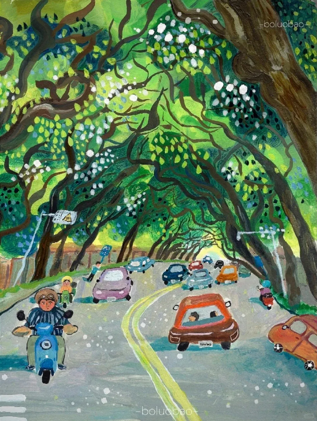 小紅書達人@菠蘿包電臺 就用色彩和線條,記錄下了她眼中的多彩惠州。