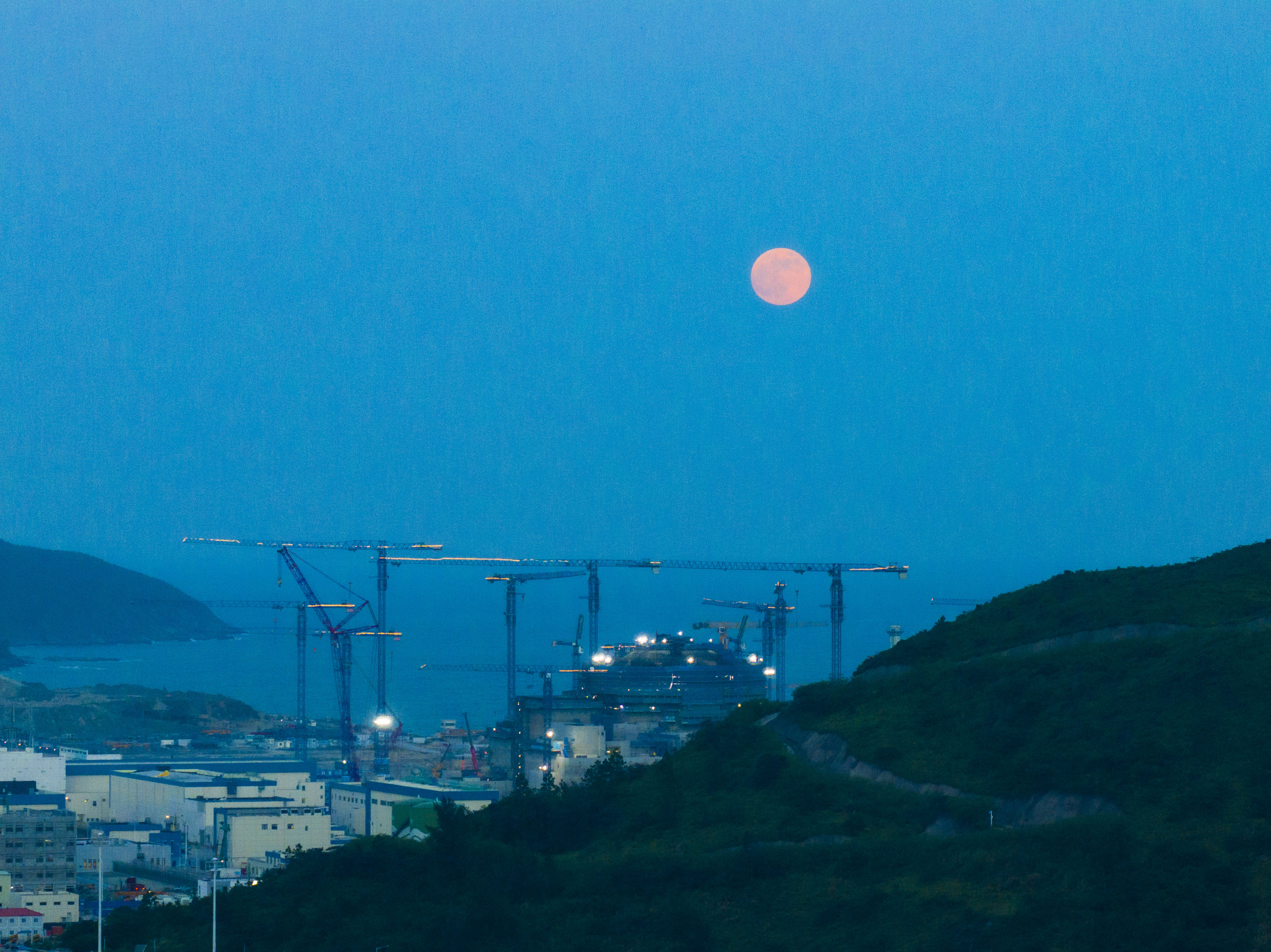 10月17日19時26分月球迎來“望”,也就是滿月時刻,而17日8時51分月球又過近地點。天文科普專家表示,這是今年滿月時刻與月球近地點時刻最接近的一次,兩者相差不到11個小時,于是這輪滿月也就成為年度最大滿月,是一輪“超級月亮”;葜萑請笥浾咴诨輺|鹽洲島拍攝“超級月亮”,為讀者獻上“海上生明月,天涯共此時”的美好時刻;葜萑請笥浾唿S鑫威 攝
