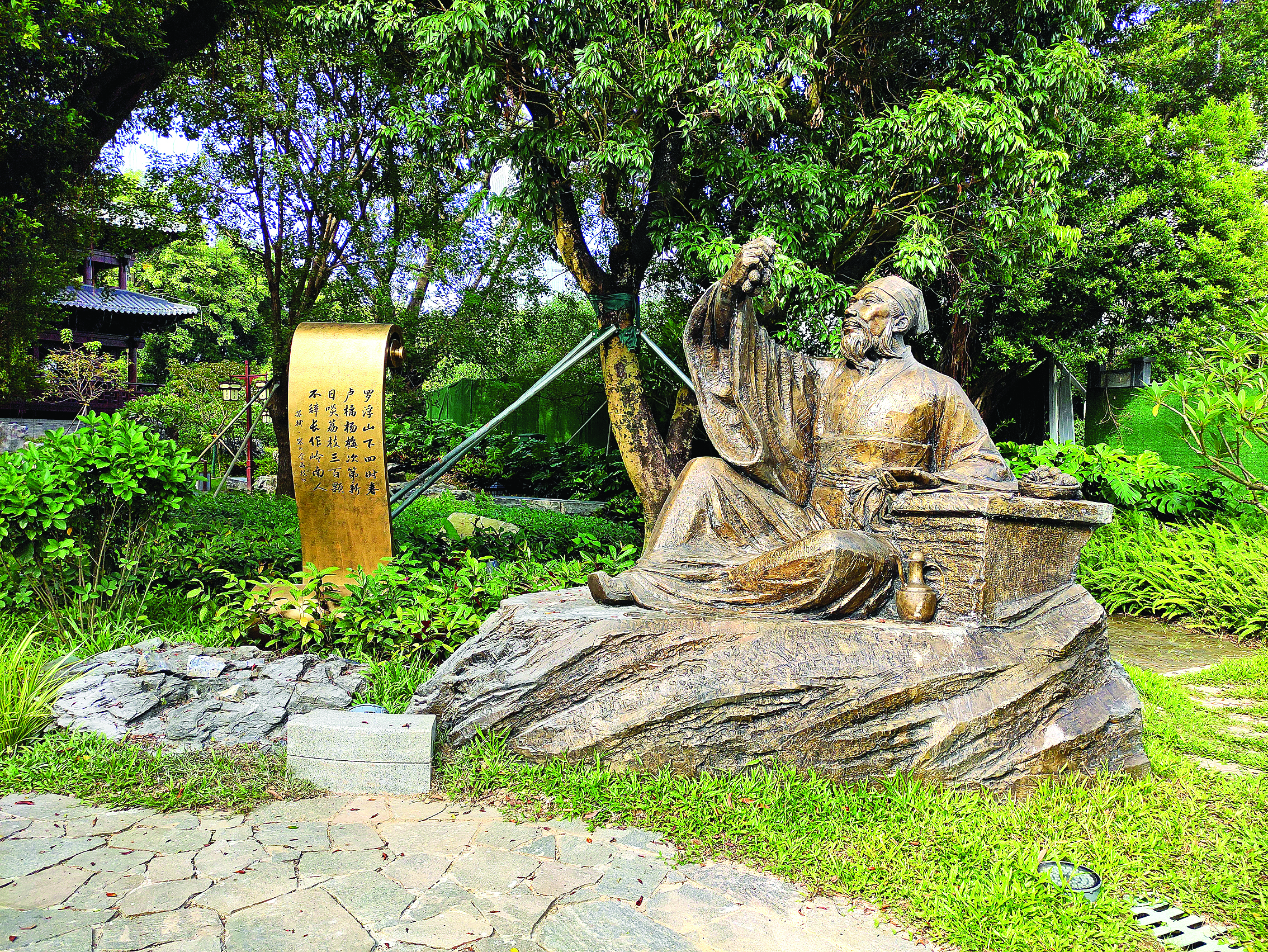 惠州中山公園東坡飲酒品荔雕塑。