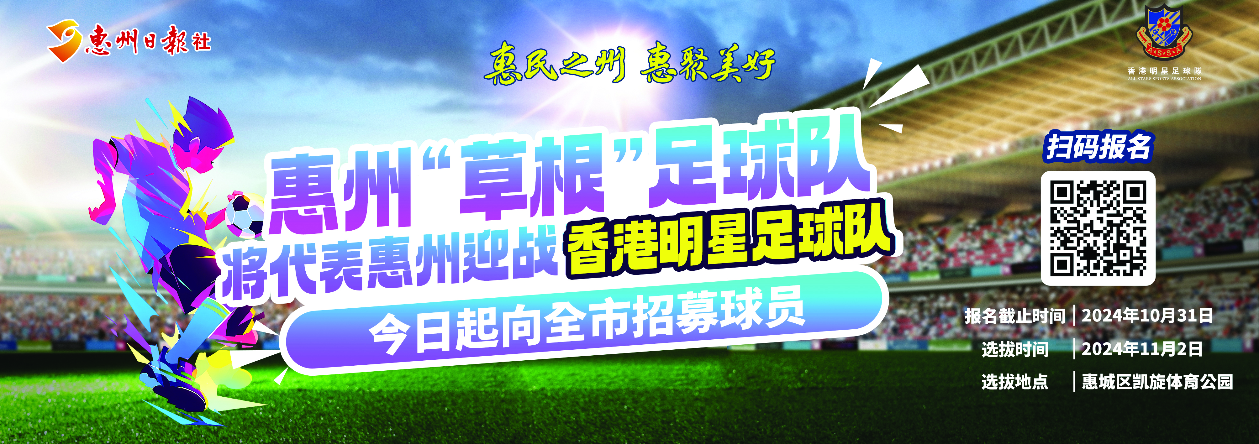 惠州日報訊 (記者龔妍)你熱愛足球嗎?想在綠茵場上綻放光彩嗎?想代表惠州迎戰(zhàn)香港明星足球隊嗎?這些夢想,在香港明星足球隊惠州公益邀請賽都能實現(xiàn)。10月20日,記者從“惠民之州 惠聚美好”香港明星足球隊惠州公益邀請賽組委會獲悉,本次大賽意在打造“普通人圓夢”主題,向惠州廣大足球愛好者廣發(fā)“英雄帖”,選拔“草根”球員組建惠州“草根”足球隊,和香港明星足球隊進行對決。不管你是保安、外賣小哥、廚師,還是建筑工人,不限年齡、職業(yè)、性別,只要你是熱愛足球、擁有一定的足球技能和潛力的非職業(yè)足球運動員,都可以報名參加本次比賽。賽事報名截止時間為10月31日,感興趣的可關(guān)注“惠州日報”微信公眾號或掃描二維碼(見下方廣告)報名。