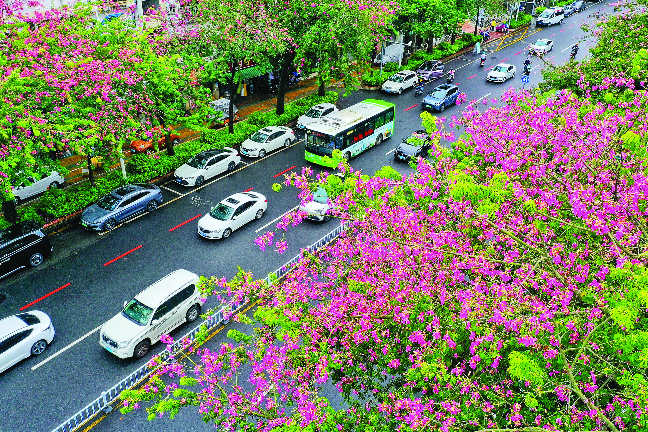 近日來,惠州市區(qū)下角東路道路兩旁,異木棉花競相綻放,形成一片粉紅色的花海。一簇簇,婷婷裊裊、婀娜多姿,浪漫了秋天,裝飾了城市。