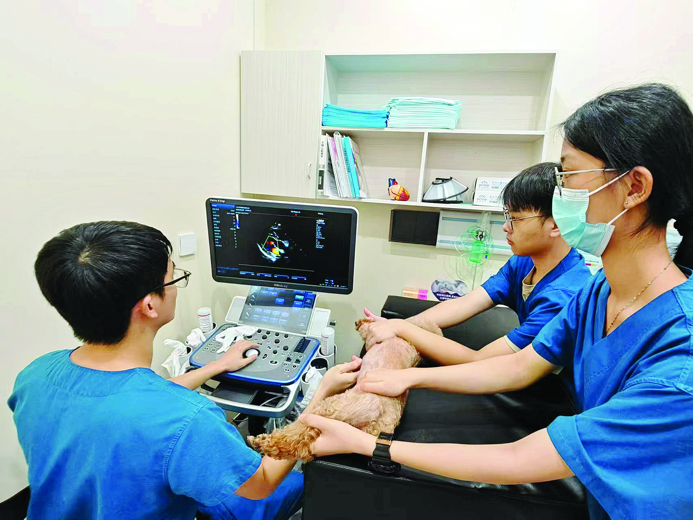 寵物醫(yī)院通過醫(yī)療設備給寵物做檢查。
