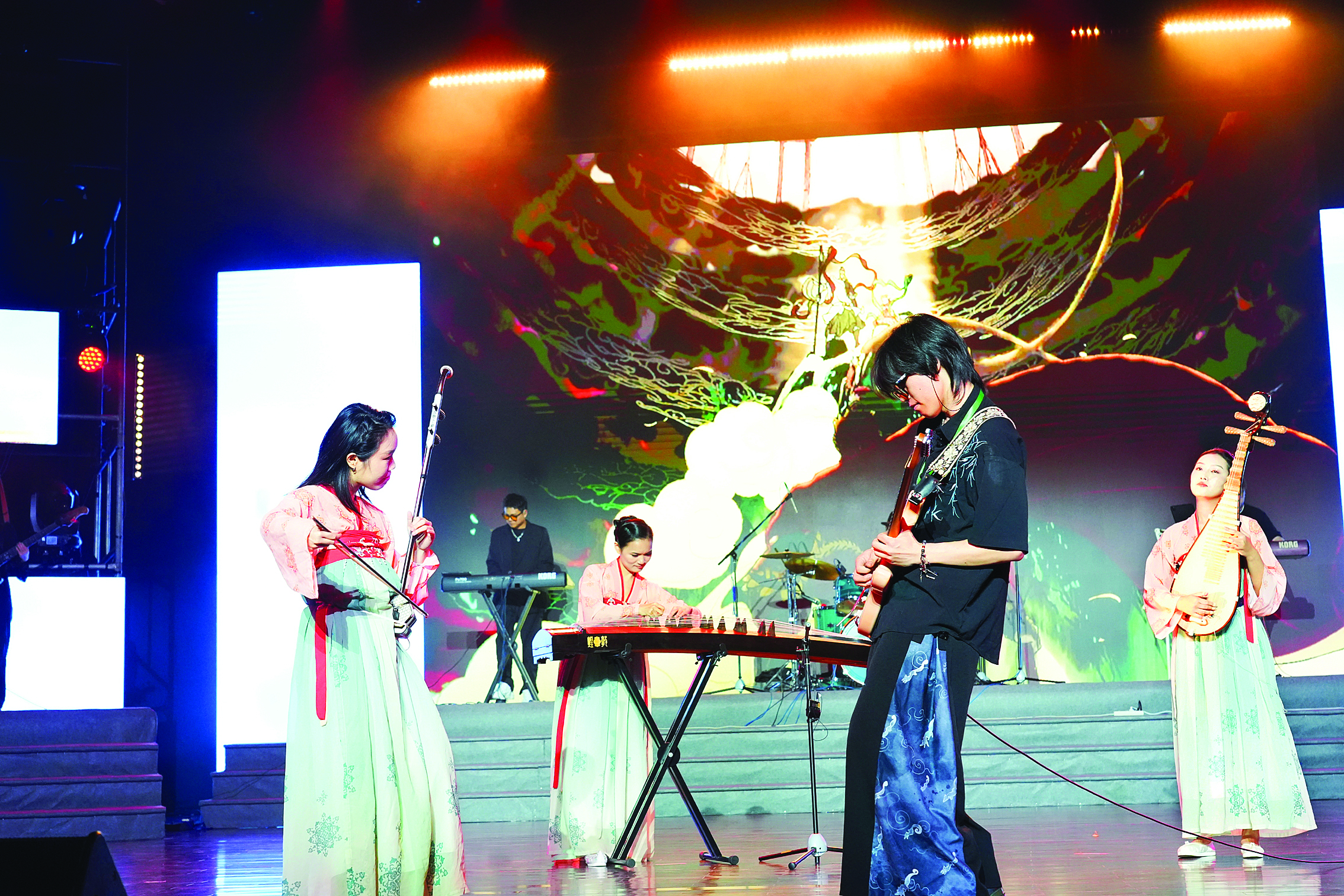 傳統(tǒng)樂器與吉他同臺演奏。惠州日報記者許文昌 攝