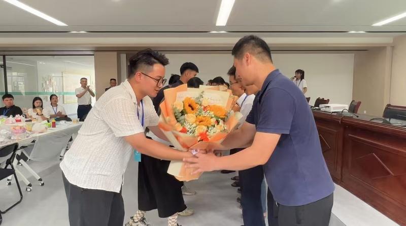 在學校慶祝第40個教師節(jié)座談會上,新教師向老教師獻花,薪火相傳攜手共進。