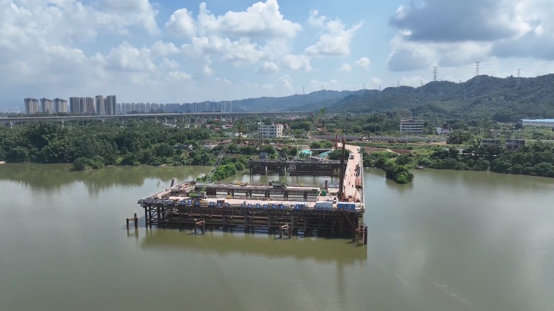 惠肇高速東江特大橋加快建設(shè);菡馗咚夙(xiàng)目供圖
