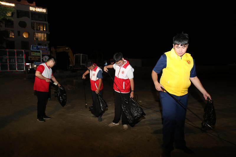 為進(jìn)一步引導(dǎo)當(dāng)?shù)厝罕姾蛷V大游客自覺(jué)愛(ài)護(hù)濱海旅游環(huán)境,今年8月5日,港口英雄民兵連新時(shí)代文明實(shí)踐基地“撿跑”夜模式正式啟動(dòng)。每到傍晚,港口英雄民兵連的志愿者們,一邊在沙灘將塑料袋、飲料瓶、紙屑等放入垃圾袋,一邊向周邊商鋪、居民宣傳環(huán)保理念,帶動(dòng)廣大群眾加入環(huán)保隊(duì)伍。