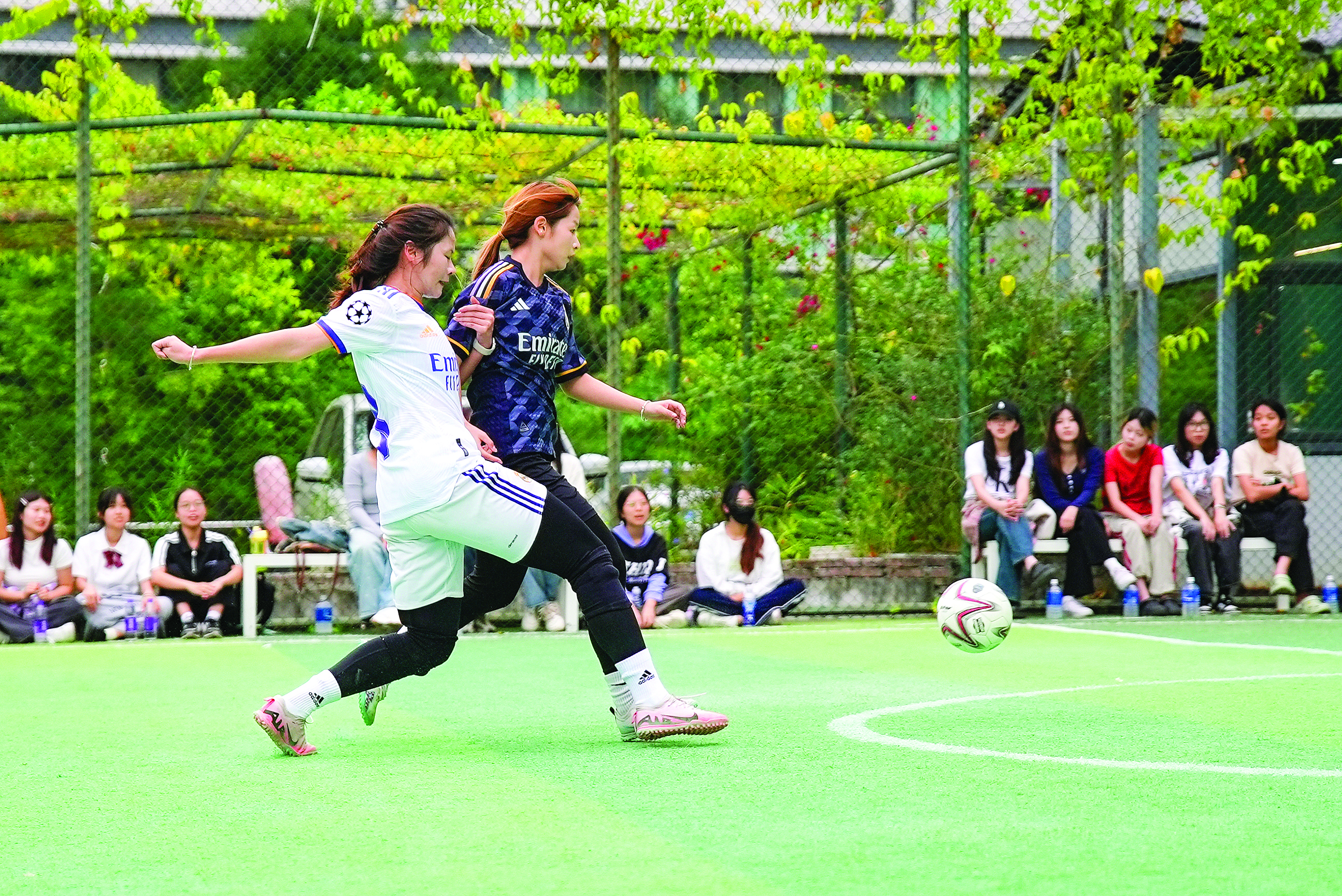 搶斷、突破、射門……當(dāng)天下午,球場(chǎng)上一支女子足球隊(duì)引起了大家的注意。7號(hào)球員陳曉月通過(guò)一系列連貫的突破動(dòng)作最后得分,引得場(chǎng)下喝彩連連。陳曉月所在的大灣區(qū)女子足球隊(duì)當(dāng)天受邀來(lái)到現(xiàn)場(chǎng)比賽。該球隊(duì)是一支成立于惠州,成員普遍來(lái)自惠州、深圳、廣州、東莞等大灣區(qū)城市的女子足球隊(duì),經(jīng)常在惠州等地比賽。