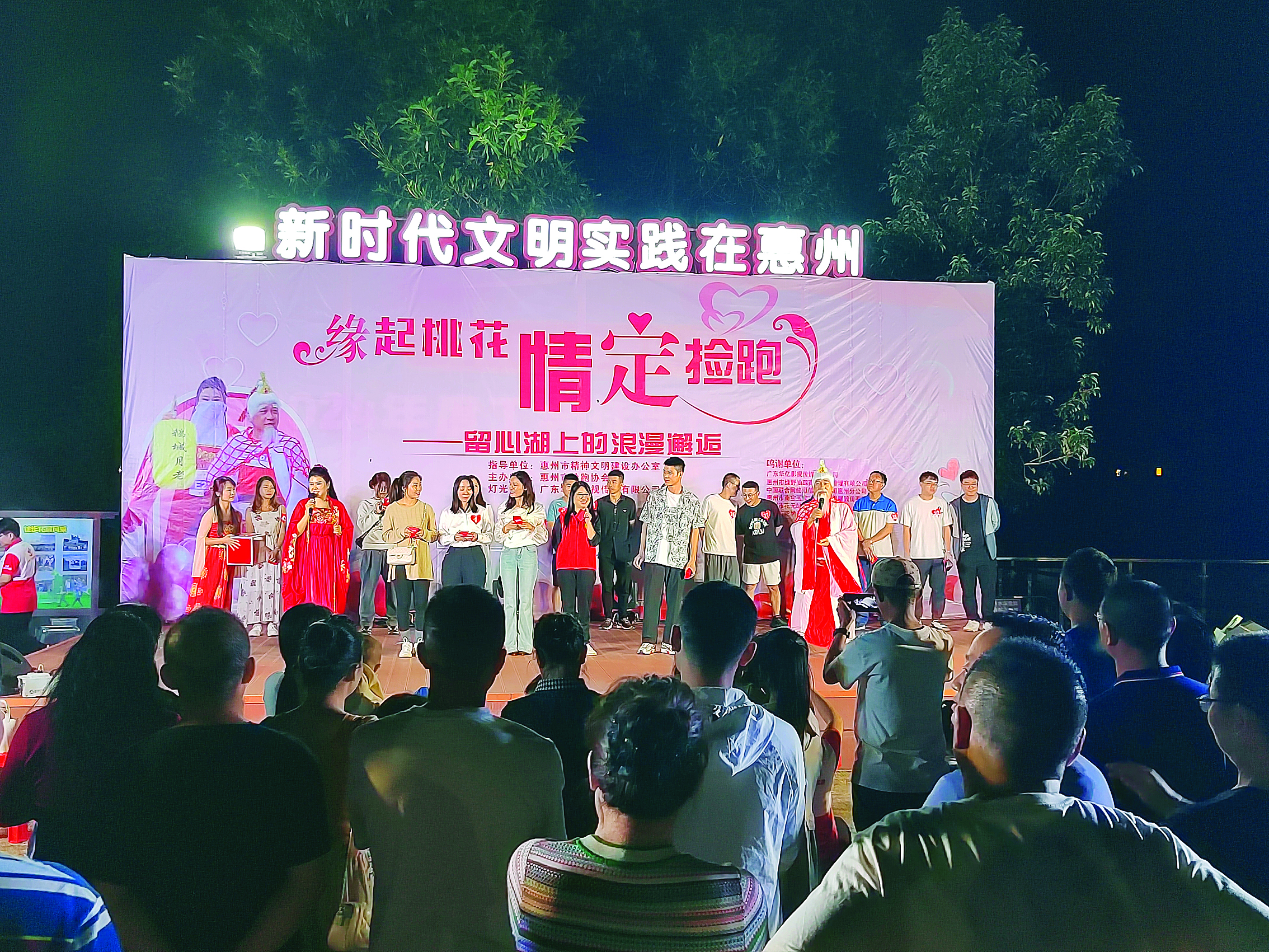 惠州日報訊 (記者劉豪偉 通訊員何慧慧)歌舞表演、游戲互動、攜手撿跑……11月11日晚,由惠州市精神文明建設辦公室指導,市撿跑協(xié)會主辦的“緣起桃花·情定撿跑——留心湖上的浪漫邂逅”撿跑活動在市區(qū)桃花源景區(qū)舉行。來自全市各行業(yè)200余名單身男女嘉賓通過“撿跑+交友”方式,讓情感在不知不覺中生根發(fā)芽,綻放出燦爛的愛情之花。
