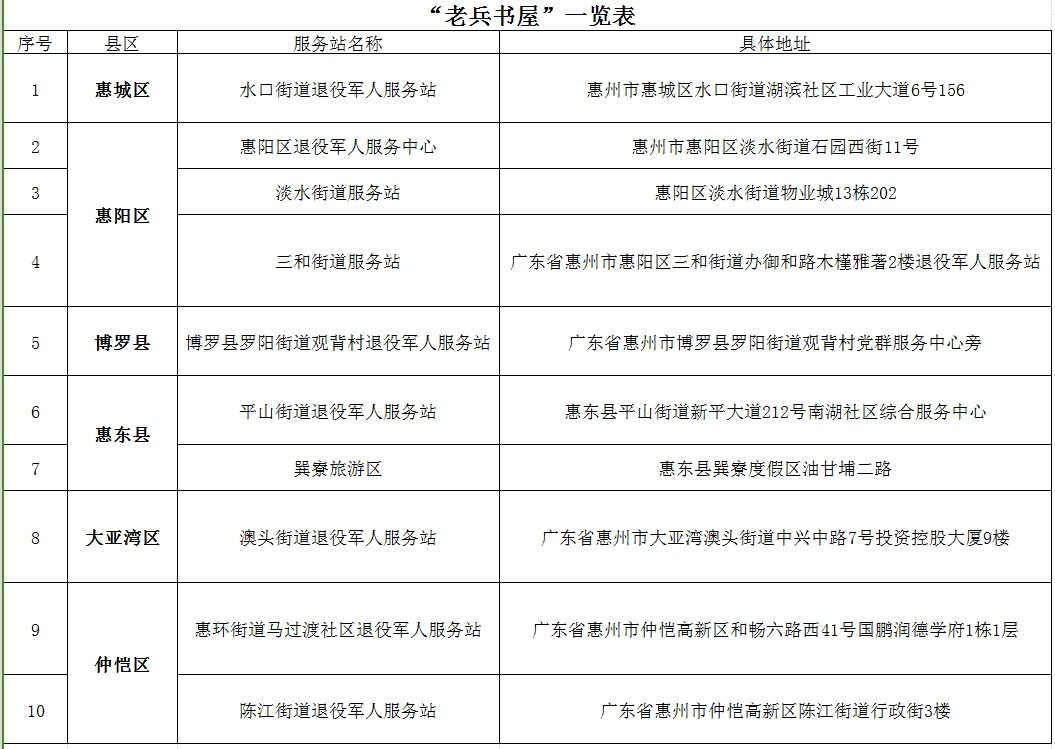“老兵書屋”的建設(shè),是惠州市圖書館貫徹落實(shí)將文化資源嫁接到退役軍人服務(wù)站的具體舉措。在“老兵書屋”建設(shè)過程中,惠州市圖書館充分延伸服務(wù)觸角,與市退役軍人服務(wù)中心精心籌備、緊密合作,在全市范圍內(nèi)選取了10個具備基本藏書和閱讀條件,具有代表性的退役軍人服務(wù)站建設(shè)“老兵書屋”。