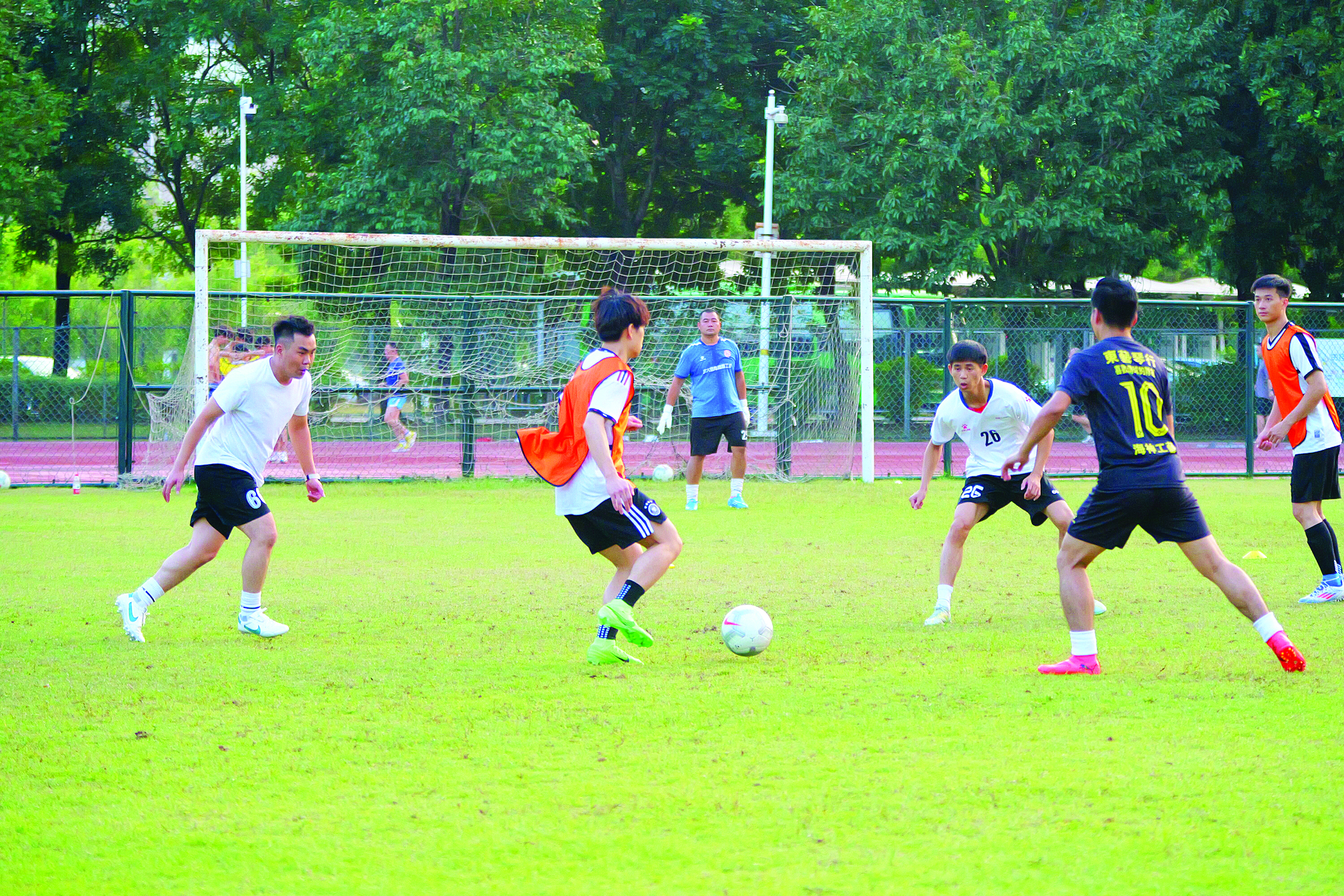 36歲的范敬科來自市城鄉(xiāng)管理和綜合執(zhí)法局,是一名城市管理工作者。從2000年上初中開始踢球到現(xiàn)在,他的球齡已有24年,參加過班級(jí)聯(lián)賽、機(jī)關(guān)聯(lián)賽、百縣杯等各種民間賽事。在球場(chǎng)上,范敬科司職中場(chǎng)拖后位置,也就是人們常說的后腰,主要負(fù)責(zé)中場(chǎng)攔截和后場(chǎng)組織進(jìn)攻等。