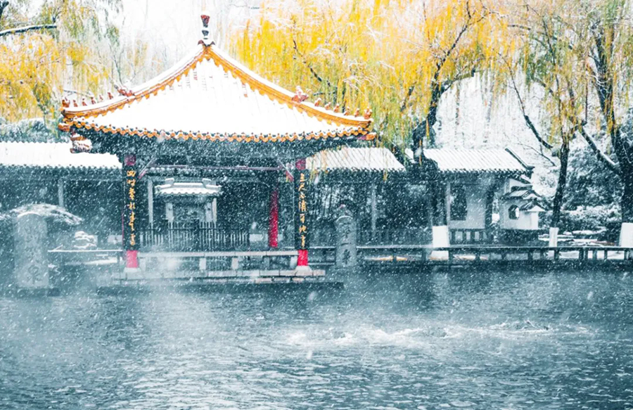 大明湖波光瀲滟,垂柳依依