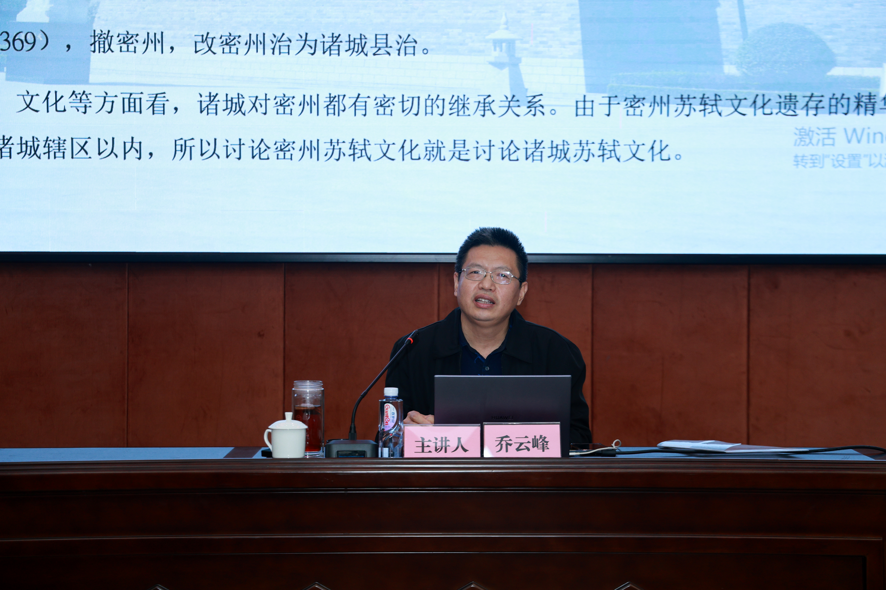近日,“千年?yáng)|坡·萬(wàn)象鵝城”惠州東坡文化大講堂第六場(chǎng)活動(dòng)在惠州博物館一樓學(xué)術(shù)報(bào)告廳舉行,山東諸城市文化藝術(shù)中心主任兼超然臺(tái)蘇軾紀(jì)念館館長(zhǎng)、濰坊市蘇軾文化研究會(huì)會(huì)長(zhǎng)喬云峰受邀開講,他以《明月千年照密州——密州蘇軾與諸城蘇軾文化概說(shuō)》為題,為惠州市民和東坡迷帶來(lái)一場(chǎng)精彩講座。