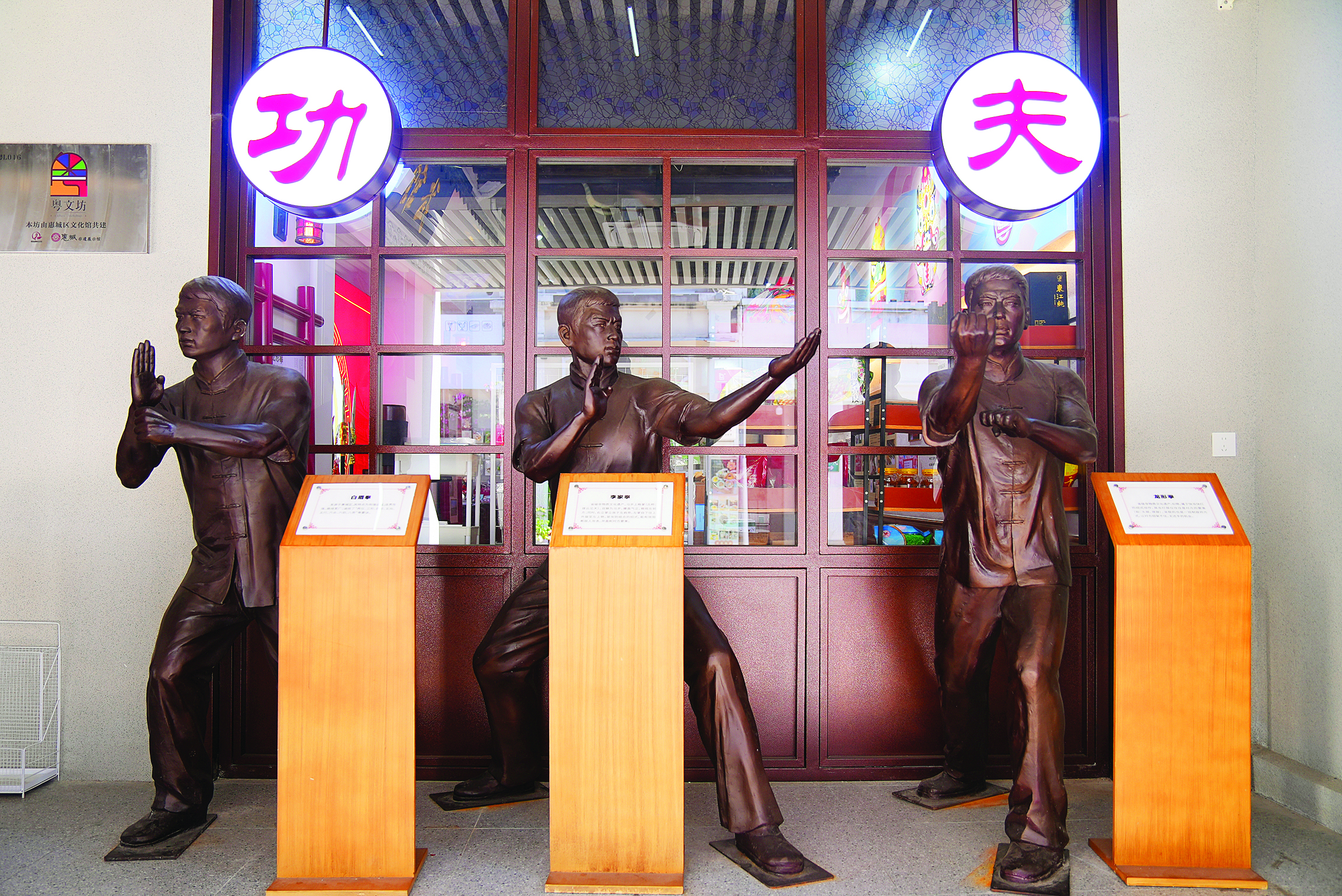 展示館大門右側(cè)擺放的功夫人像雕塑。