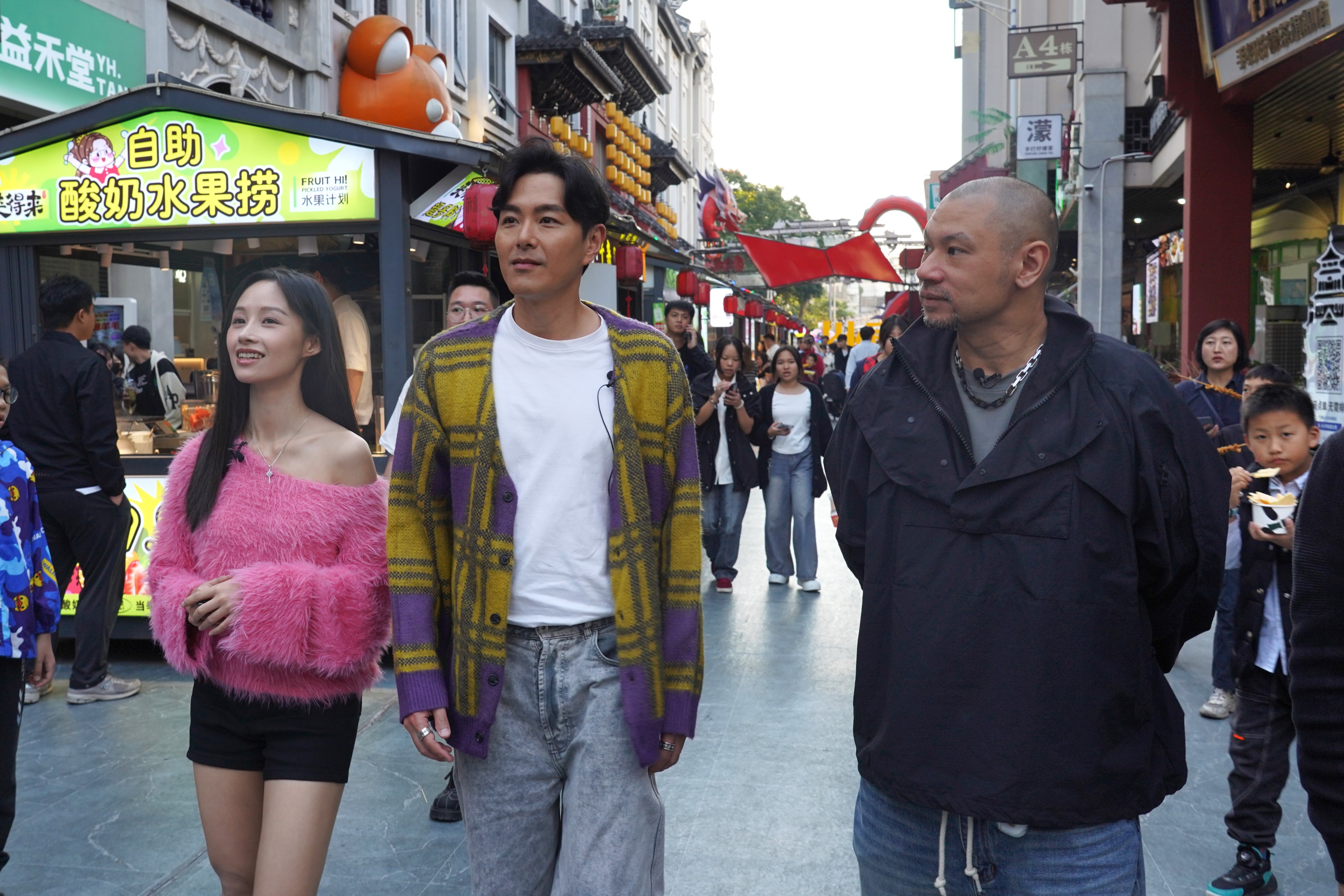 香港藝人蕭正楠、金剛、藍(lán)珊珊等在水東街覓食。