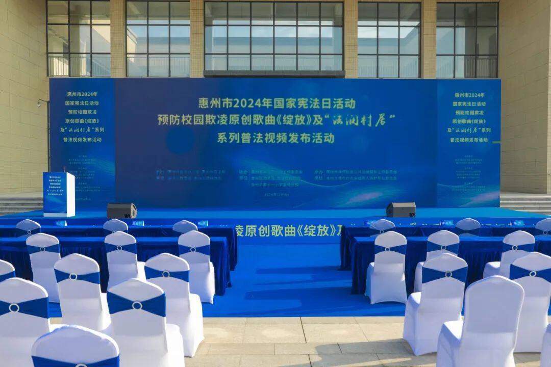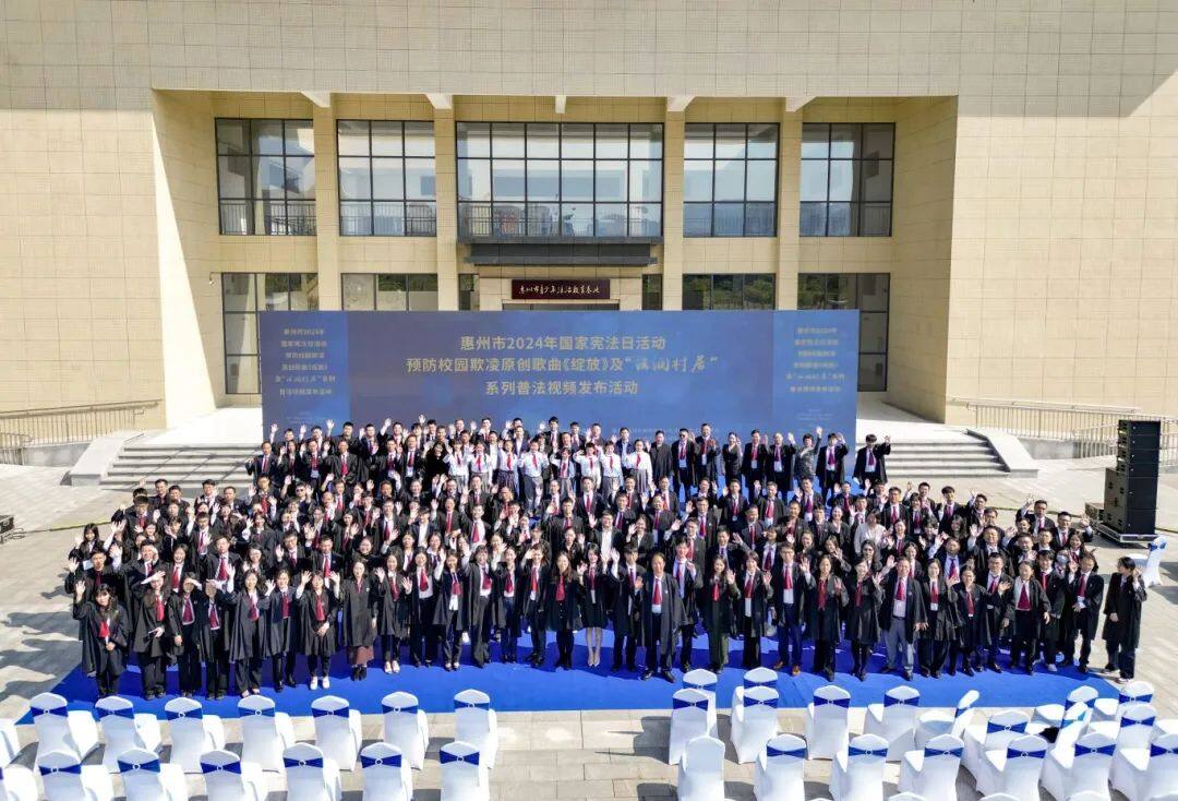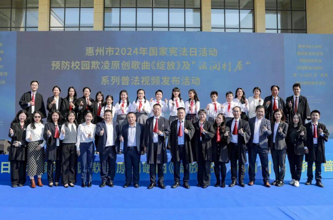 在第十一個國家憲法日,惠州市律師協(xié)會預防校園欺凌原創(chuàng)歌曲、“法潤村居”系列普法視頻發(fā)布活動在惠州市青少年法治教育基地隆重舉行。此次活動由市普法辦公室、市司法局、市教育局以及市律師協(xié)會共同主辦。市律師行業(yè)黨委專職副書記謝峰、普法與依法治理科科長余雨植,惠城區(qū)司法局,惠州市、惠城區(qū)教育局,市律師協(xié)會等單位相關(guān)負責人,以及160余名惠州執(zhí)業(yè)律師、第十一小學金榜分校部分師生參加活動。