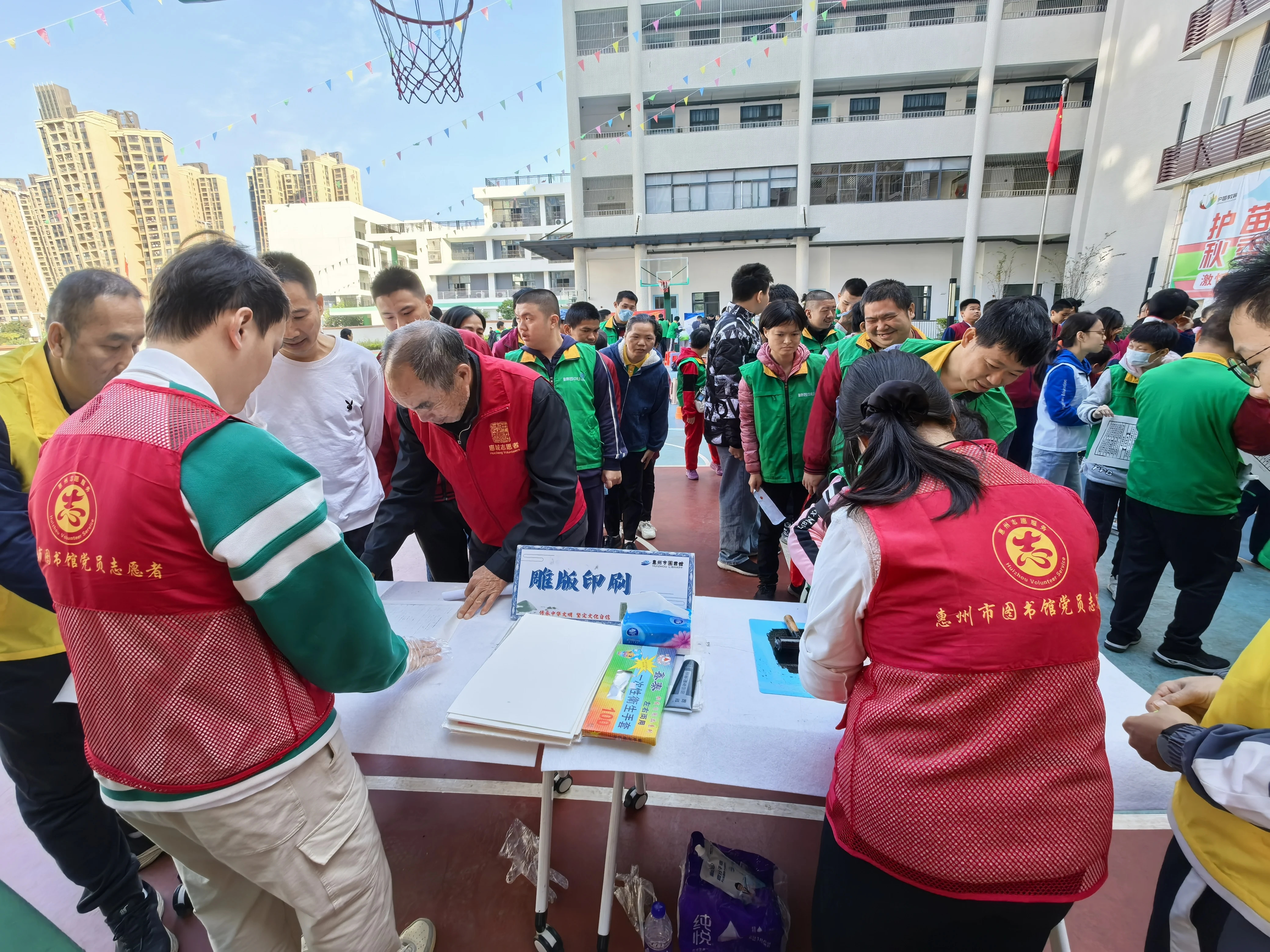 冬日暖陽下,活動現(xiàn)場人頭攢動,惠州市圖書館精心準備了以中華優(yōu)秀傳統(tǒng)文化技藝體驗為載體設計的系列活動,讓殘障人士在知識講解中親身體驗中華優(yōu)秀傳統(tǒng)文化,堅定文化認同感和文化自信。雕版印刷攤位前,在館員的細心講解和指導下,康園中心會員和一眾護苗培智學校學生興致勃勃地體驗雕版印刷,從蘸墨到敷墨、從覆紙再到刷印,在過程中感受墨香裊裊、書香縈繞;拓印攤位前,學生們有序排隊,拓印瓦當,體驗古代傳拓技藝的獨特魅力;古籍裝幀攤位前,志愿者親手示范,一針一線地講解穿針引線的步驟;數字閱讀資源推廣攤位前,館員介紹了惠州市圖書館無障礙數字資源的便捷使用方法,引導殘障人士通過電腦或者手機端隨時獲取聽書和無障礙影音數據庫等免費資源。