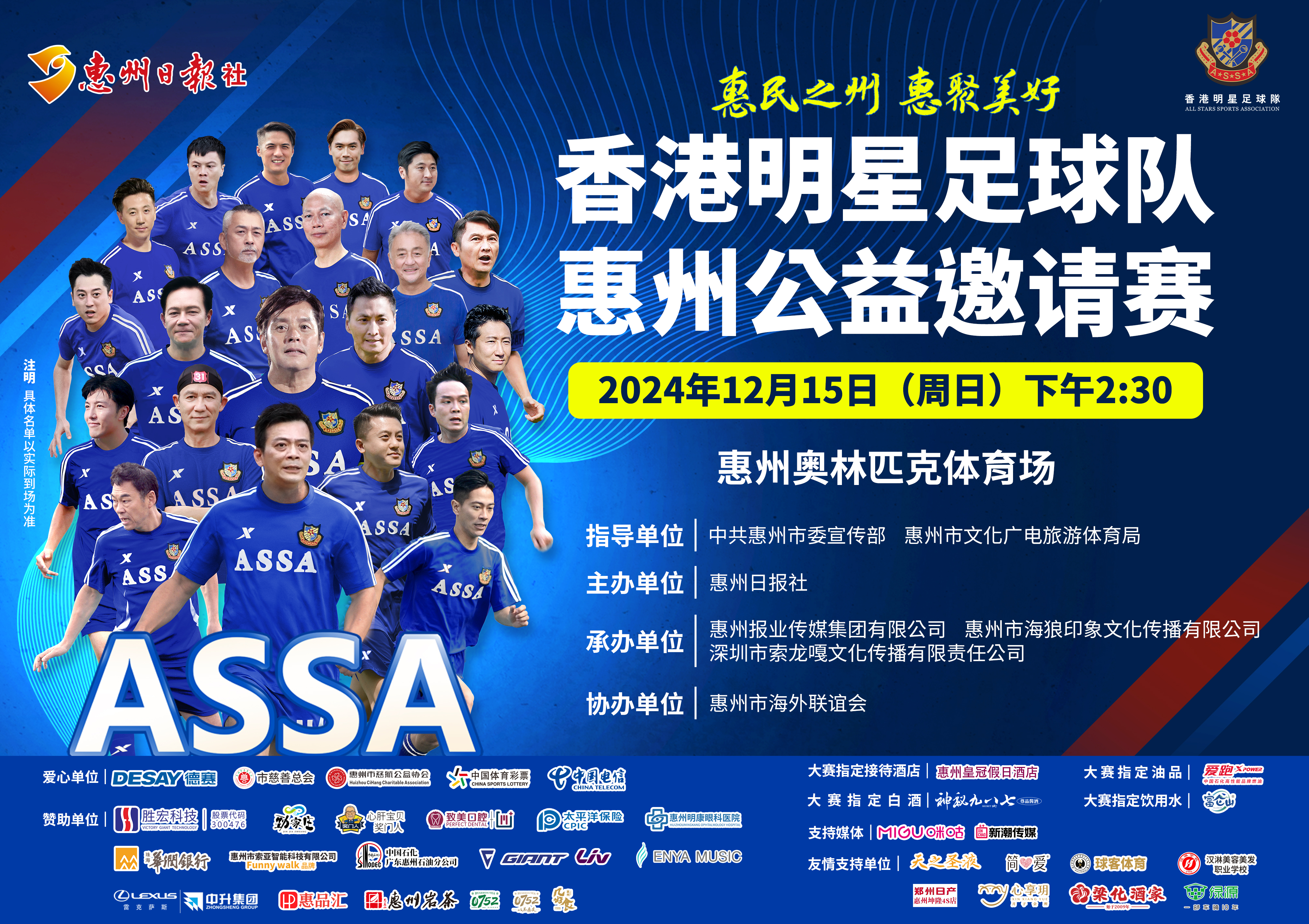 何家勁、黃日華、李子雄、羅家英、梁漢文……看著這些香港明星的名字,你是否也跟我一樣,全是滿滿的回憶?在12月15日下午舉行的“惠民之州 惠聚美好”香港明星足球隊惠州公益邀請賽上,他們將在惠州奧林匹克體育場約定你。