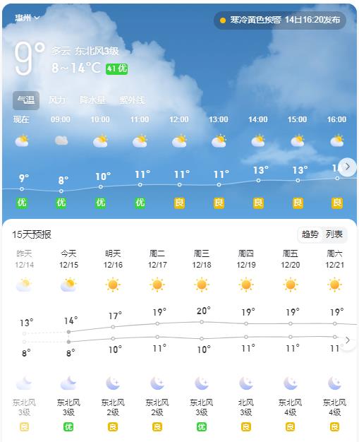 未來一周惠州冷空氣頻繁
