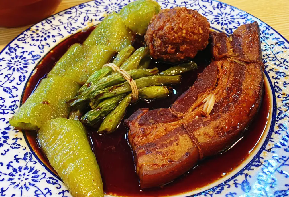 甏肉干飯起源于元朝,隨著京杭大運(yùn)河的開(kāi)通,南方大米北運(yùn),濟(jì)寧人將用陶器燉出的肉與大米飯搭配,逐漸發(fā)展成今日的甏肉干飯。甏肉色澤紅潤(rùn),質(zhì)地柔嫩,肥而不膩,爛而不糜,搭配咸菜、老虎菜或腌制辣椒,味道更佳。