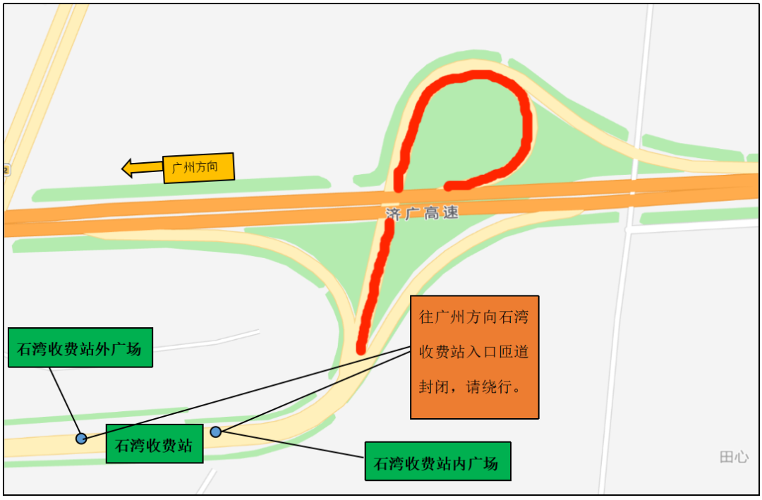 石灣收費(fèi)站入口廣州方向匝道封閉示意圖