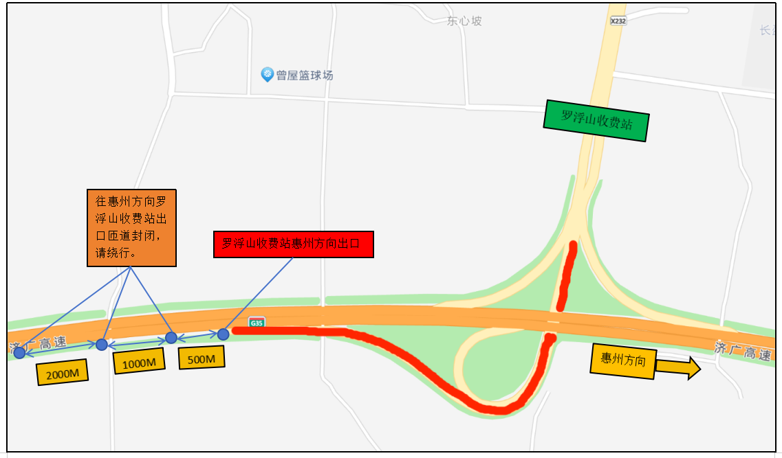 羅浮山收費(fèi)站惠州方向出口匝道封閉示意圖
