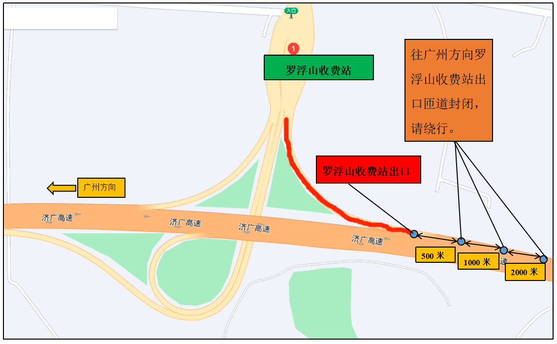 羅浮山收費(fèi)站廣州方向出口匝道封閉示意圖