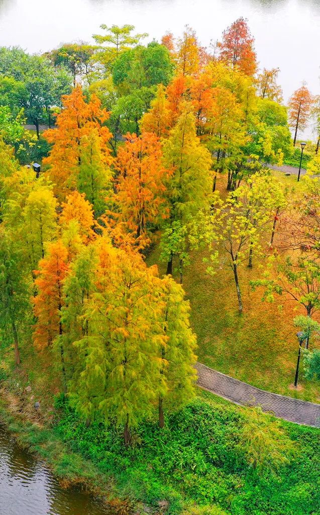 一大片紅黃交織的落羽杉美成畫(huà)來(lái)!