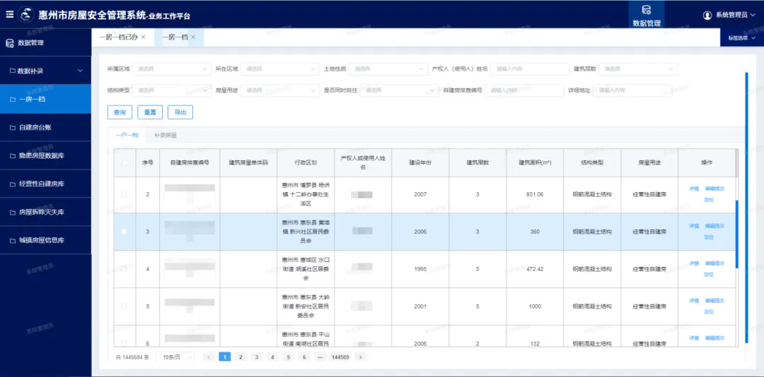 惠州市房屋安全管理系統(tǒng)是面向全市的監(jiān)管平臺(tái),可實(shí)現(xiàn)市、縣(區(qū))、鄉(xiāng)鎮(zhèn)、村多級聯(lián)動(dòng)一屏監(jiān)管,可方便各級政府部門全面掌握所轄區(qū)域自建房建設(shè)、安全、危房等情況。