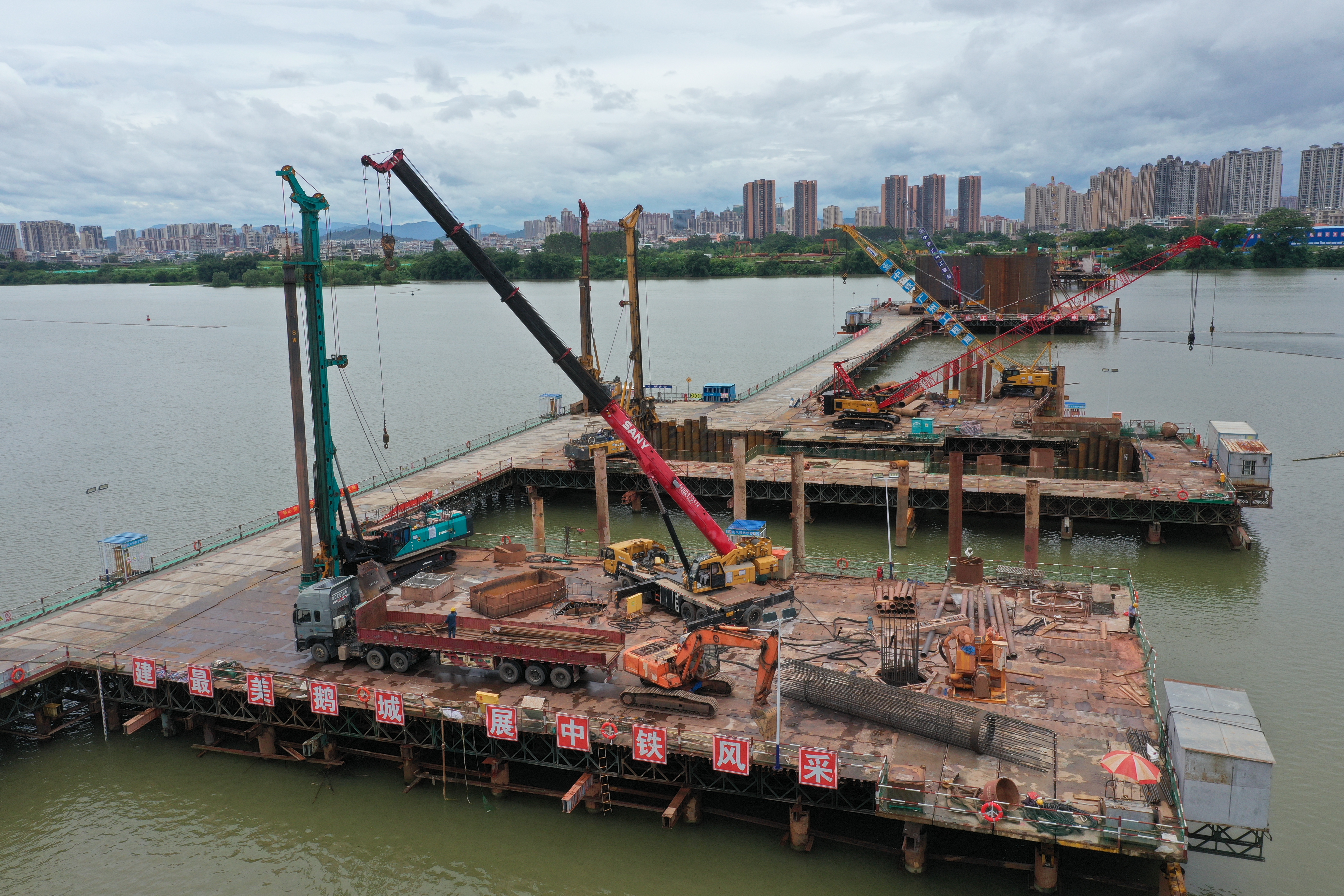 鵝城大橋于2021年12月開工建設,這是2022年8月9日,施工單位在鉆橋樁基。