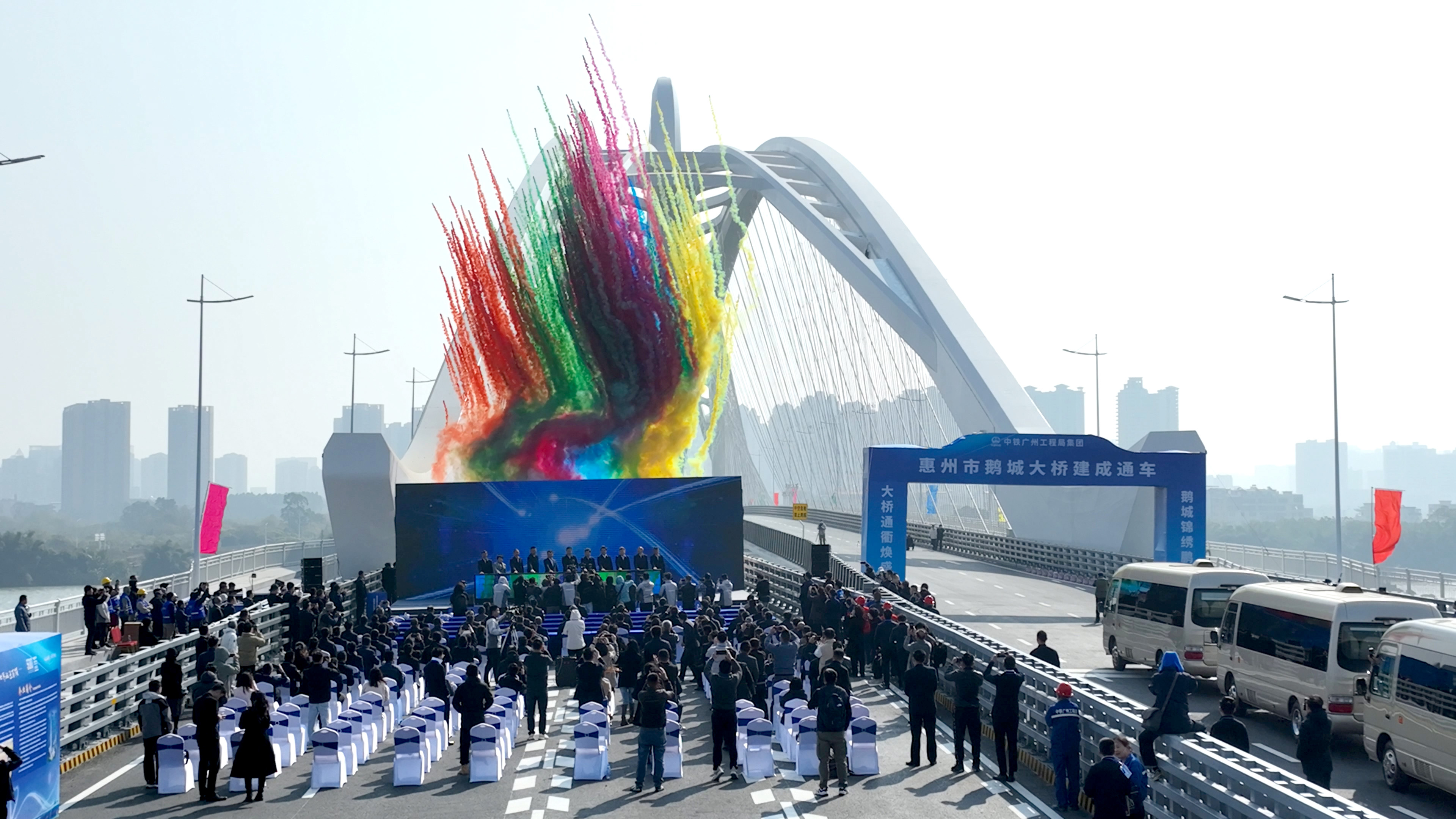 “鵝城”終于有鵝城大橋了!12月28日上午,伴著冬日暖陽,由中鐵廣州工程局承建的惠州鵝城大橋正式通車,標志著惠州“豐”字交通主框架進一步完善。鵝城大橋是惠州首座斜跨異型拱橋,也是市區(qū)第7座跨東江大橋。大橋通車后,將有效緩解東江大橋、隆生大橋的交通壓力,加快形成城市東聯(lián)、南接快速通道,成為聯(lián)動東江兩岸惠民興業(yè)的新動脈。