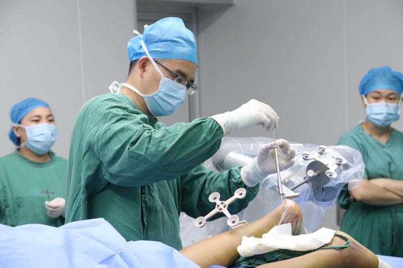 汪洋主任為患者行骨科機(jī)器人手術(shù)。