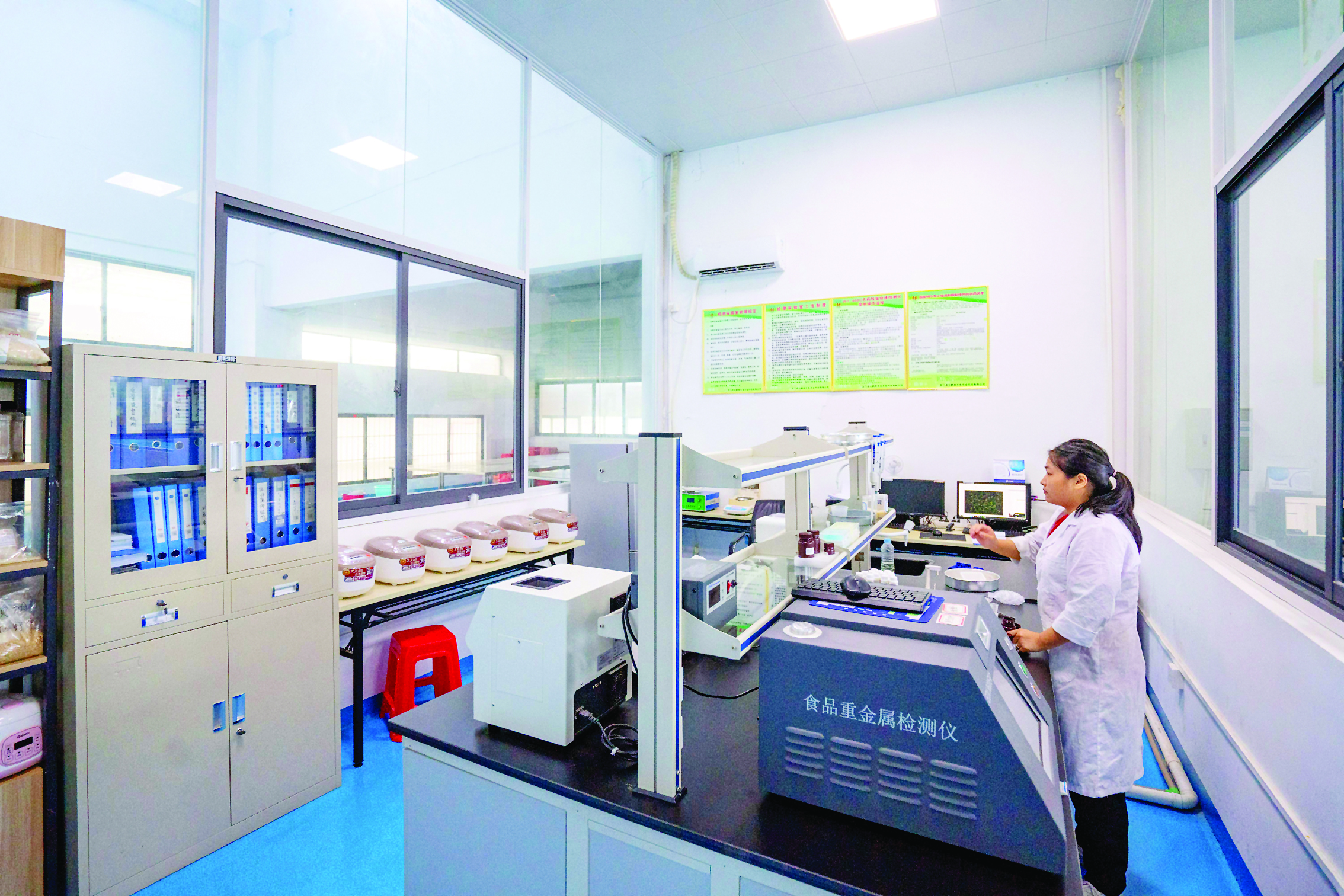 龍門縣絲苗米省級(jí)現(xiàn)代農(nóng)業(yè)產(chǎn)業(yè)園內(nèi)工作人員對(duì)大米進(jìn)行檢測(cè)。惠州東江圖片社供圖