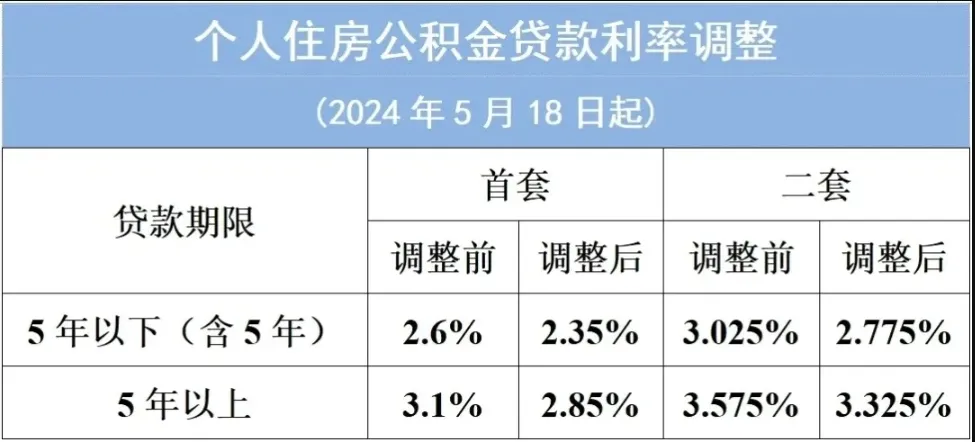 2024年5月17日,中國人民銀行發(fā)布關(guān)于下調(diào)個人住房公積金貸款利率的通知,宣布下調(diào)個人住房公積金貸款利率0.25個百分點。