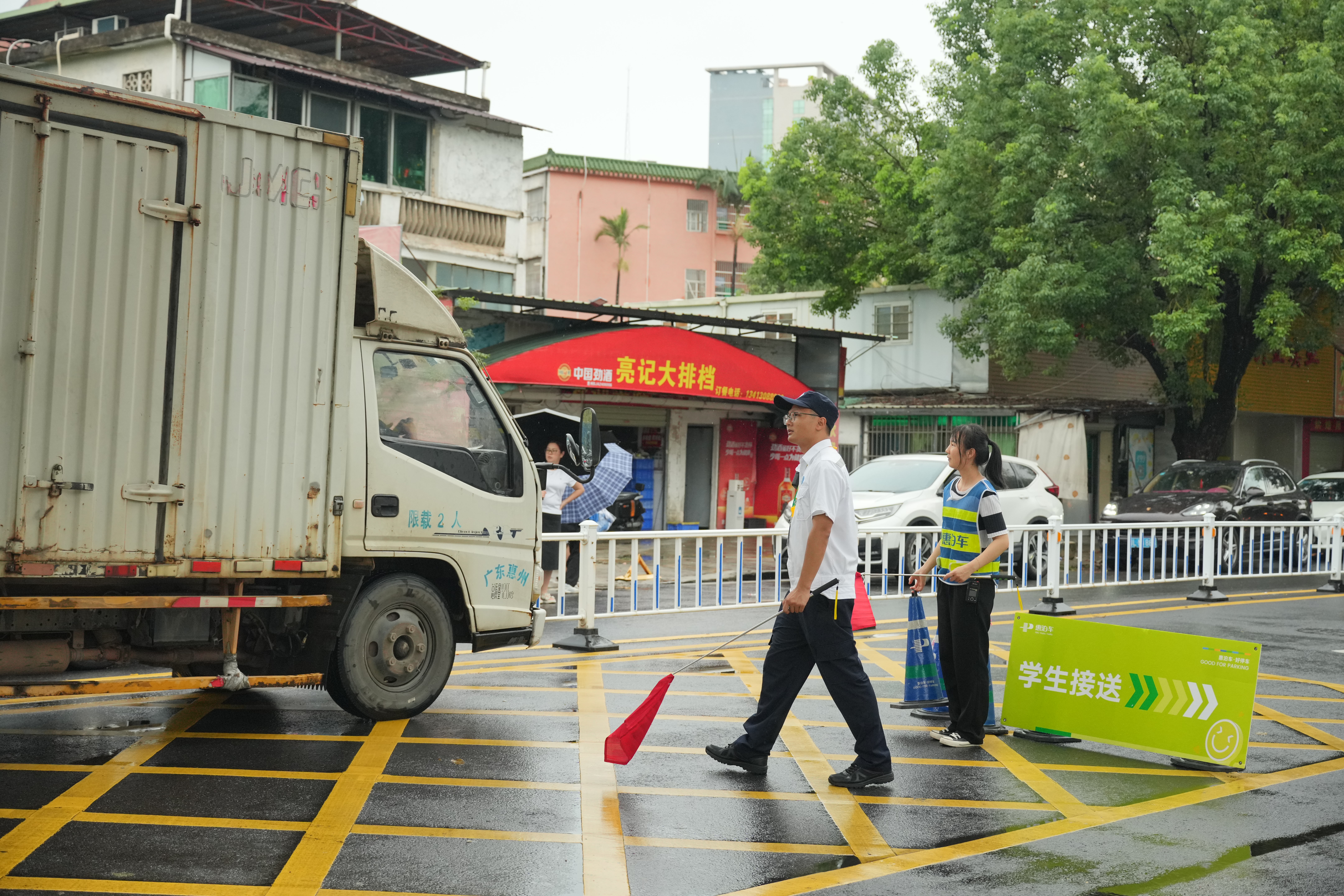 在東坡公園停車場(chǎng)周邊護(hù)學(xué)崗,志愿者配合交警等指揮交通;葜萑?qǐng)?bào)記者周楠 攝