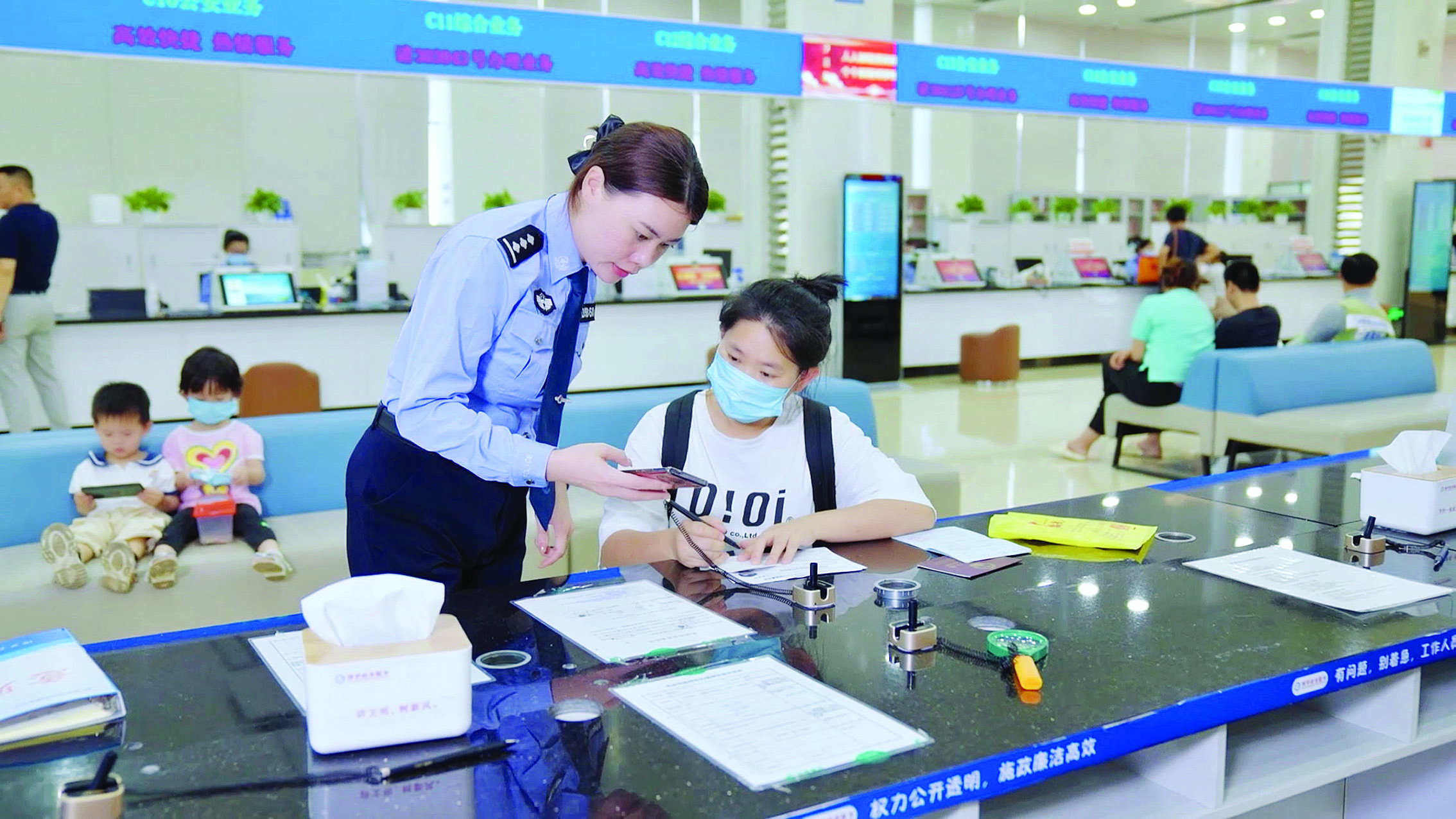 目前,林婷婷與同事們在博羅率先完成“大廳之外無審批”,打造了全市進駐警種最全、事項最多的公安政務(wù)服務(wù)大廳,可以統(tǒng)一受理46項多警種高頻事項,真正實現(xiàn)了“一次排隊、一窗受理、快速辦結(jié)”,大大提升了企業(yè)和群眾辦事效率。
