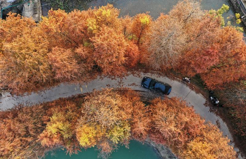 近日,仲愷高新區(qū)潼湖鎮(zhèn)F33鄉(xiāng)道到梅坑路段,一片落羽杉披上了“紅裝”,狀如羽毛的枝葉隨風搖曳,深深淺淺的橘紅色在陽光的照耀下顯得分外耀眼絢麗,宛如油畫般詩情畫意,吸引了不少市民游客打卡拍照。